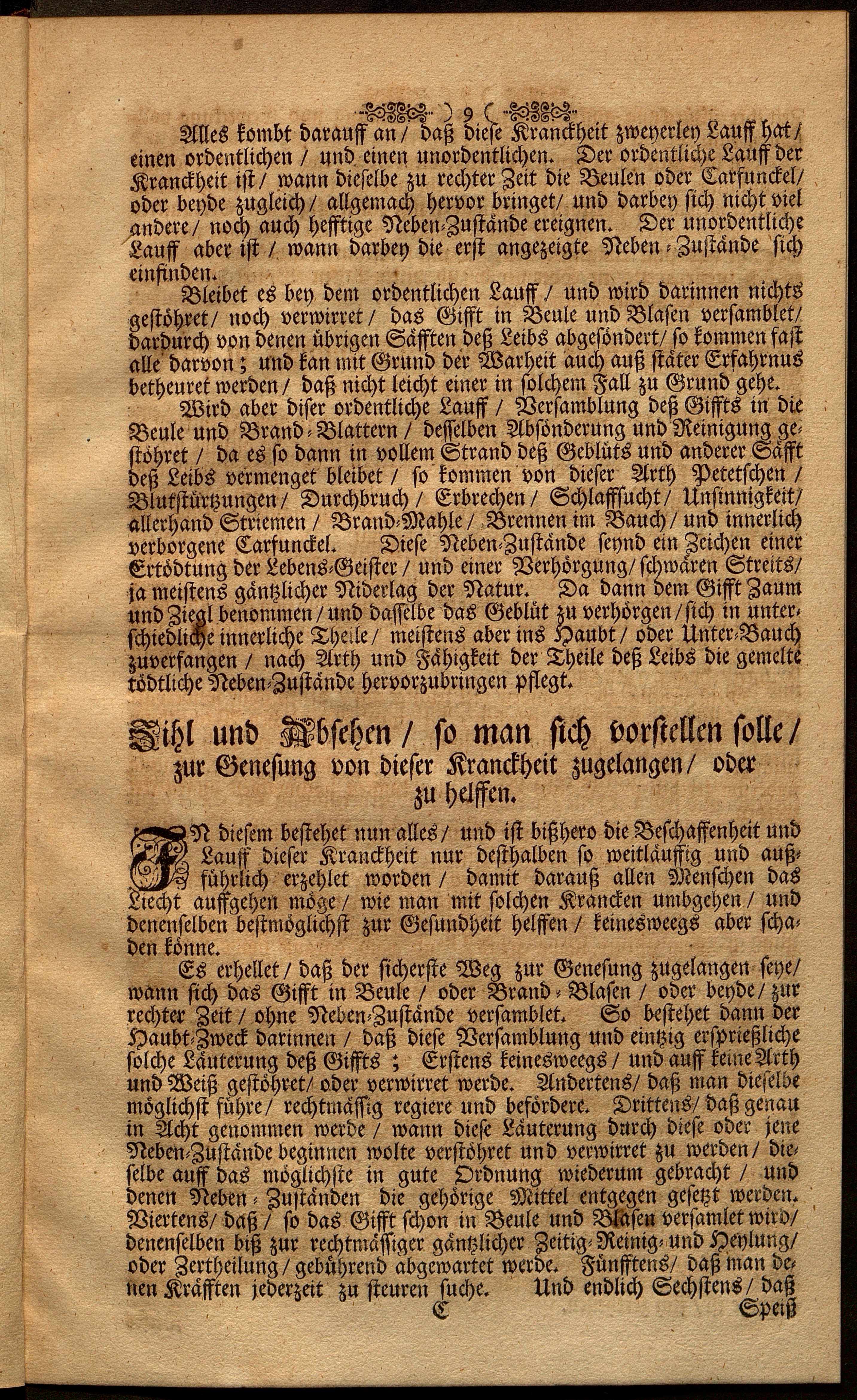 Ansteckender Seuche, welche dises 1713. Jahr In das Ertz-Hertzogthum Nieder-Oesterreich eingeschlichen, Gründlich- und ausführliche Nachricht, sonderbar auf das Land : Sambt benöthigter Hülffs- Rettungs- Und Verwahrungs-Mittlen ; Auß dem Nieder-Oesterreichischen Gesundheits-Rath