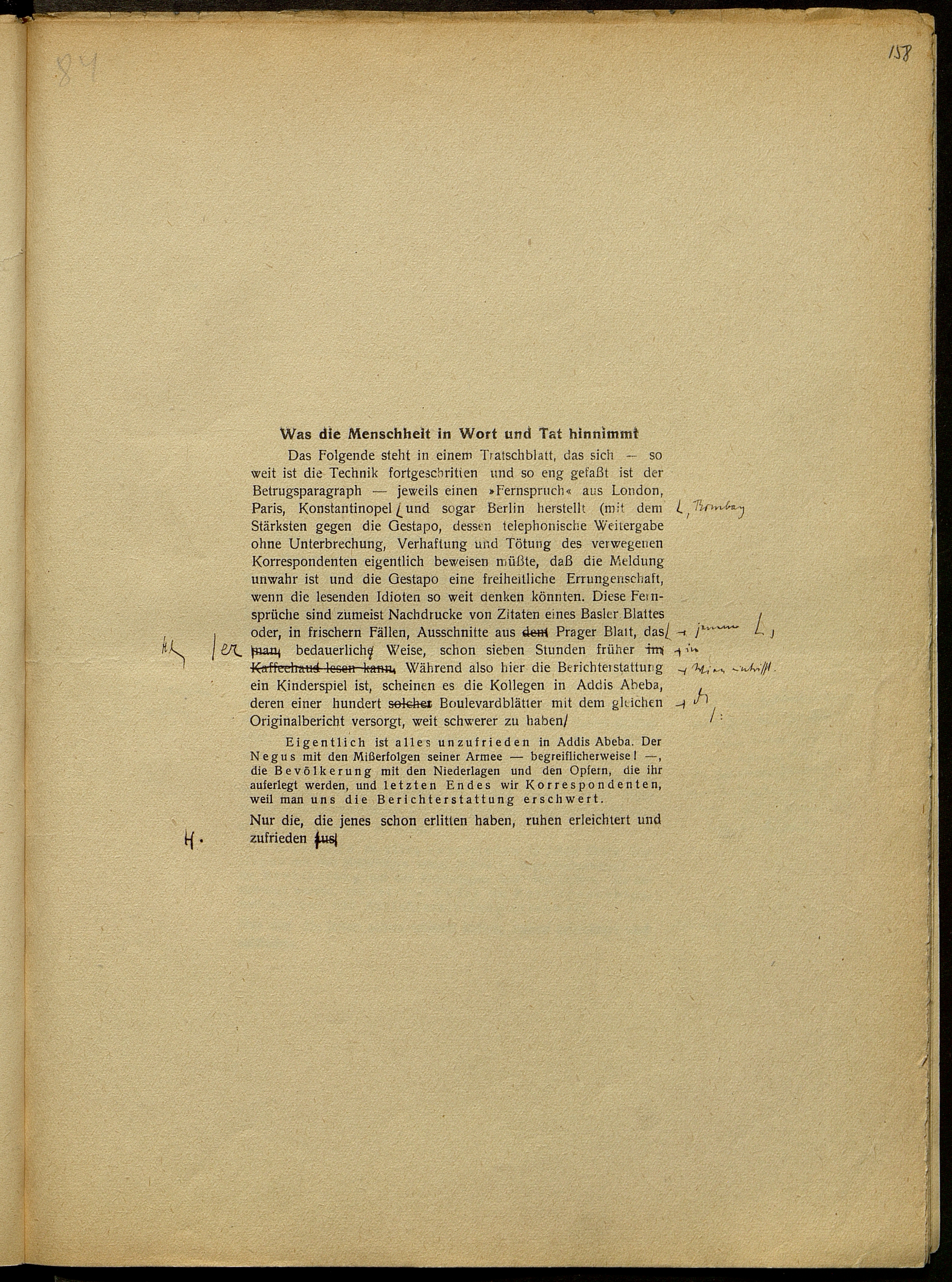Korrekturbögen von Karl Kraus zur Fackel Nr. 917/922 : II. Teil: Notizen und Glossen - vor dem Umbruch