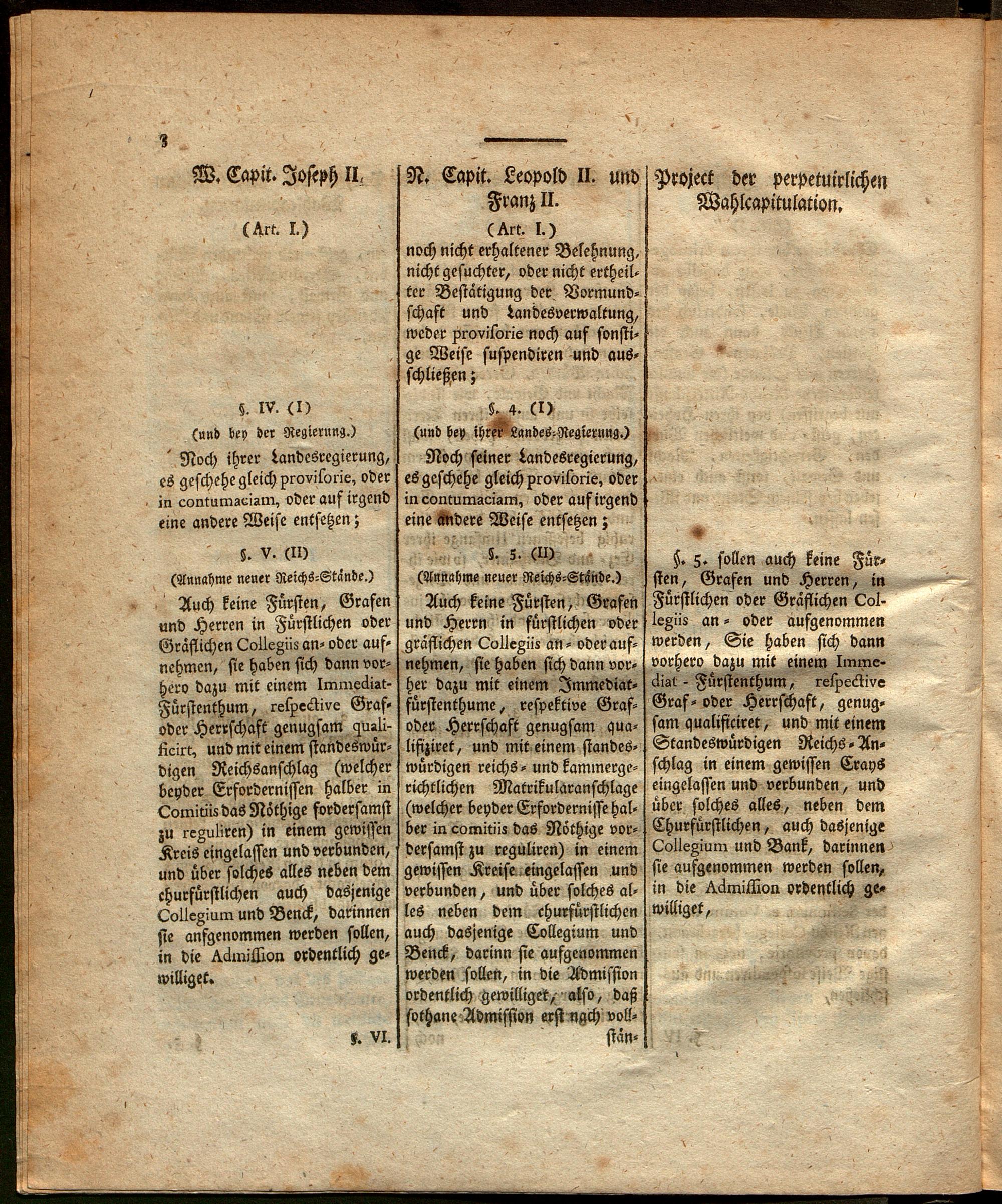 Wahlcapitulation Leopold II. und Franz II. verglichen mit ihren Quellen, nähmlich der beständigen, der vorhergehenden Joseph II. der Fürstlichen und Reichsstädtischen Gravaminibus und Montis, und den Beschwerden und Wünschen des Schwäbischen Reichskreises