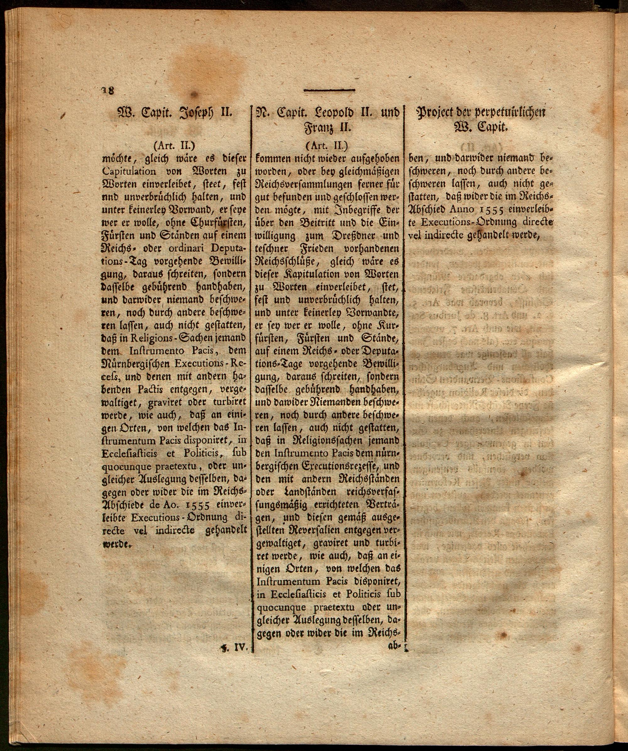 Wahlcapitulation Leopold II. und Franz II. verglichen mit ihren Quellen, nähmlich der beständigen, der vorhergehenden Joseph II. der Fürstlichen und Reichsstädtischen Gravaminibus und Montis, und den Beschwerden und Wünschen des Schwäbischen Reichskreises