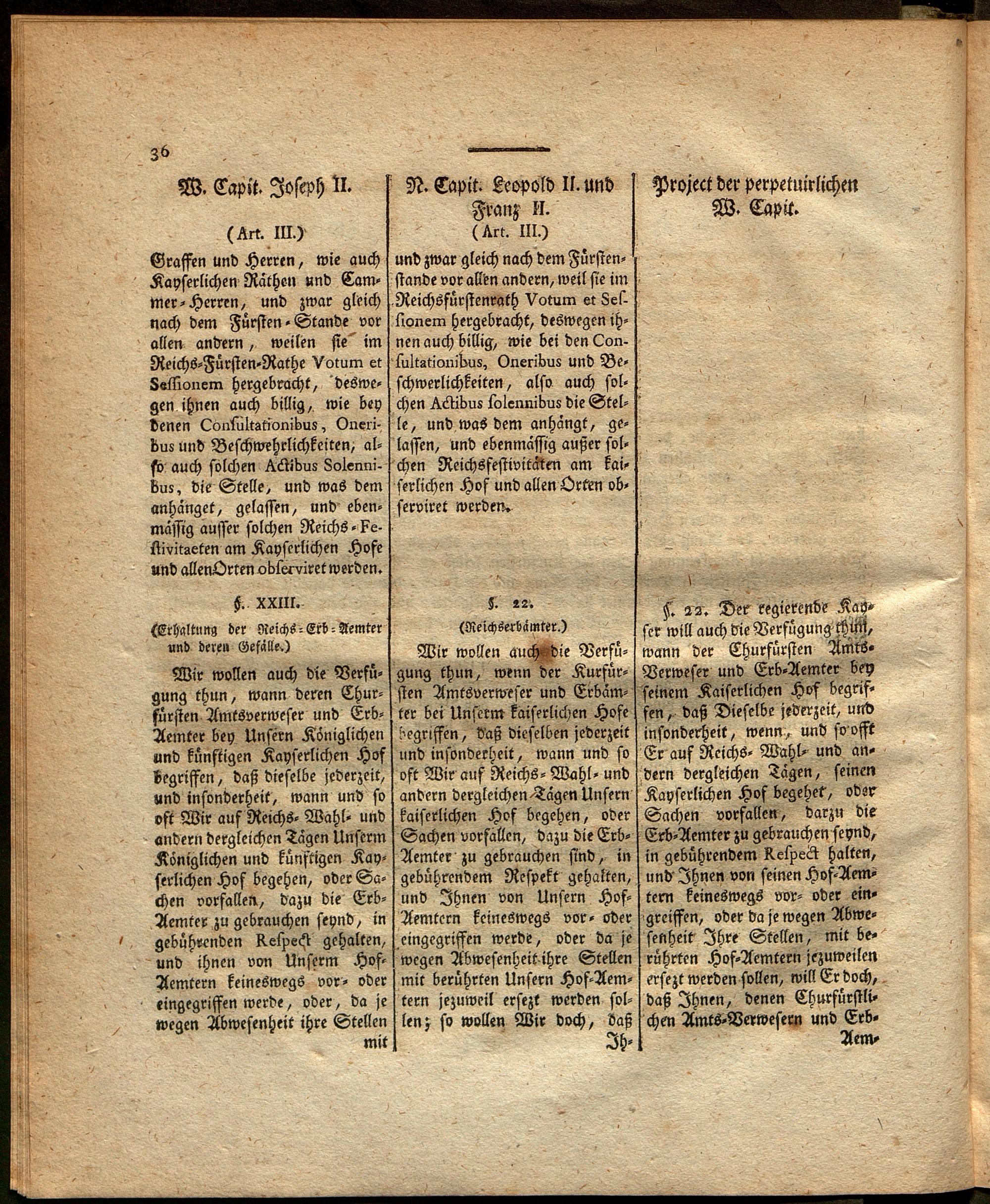Wahlcapitulation Leopold II. und Franz II. verglichen mit ihren Quellen, nähmlich der beständigen, der vorhergehenden Joseph II. der Fürstlichen und Reichsstädtischen Gravaminibus und Montis, und den Beschwerden und Wünschen des Schwäbischen Reichskreises