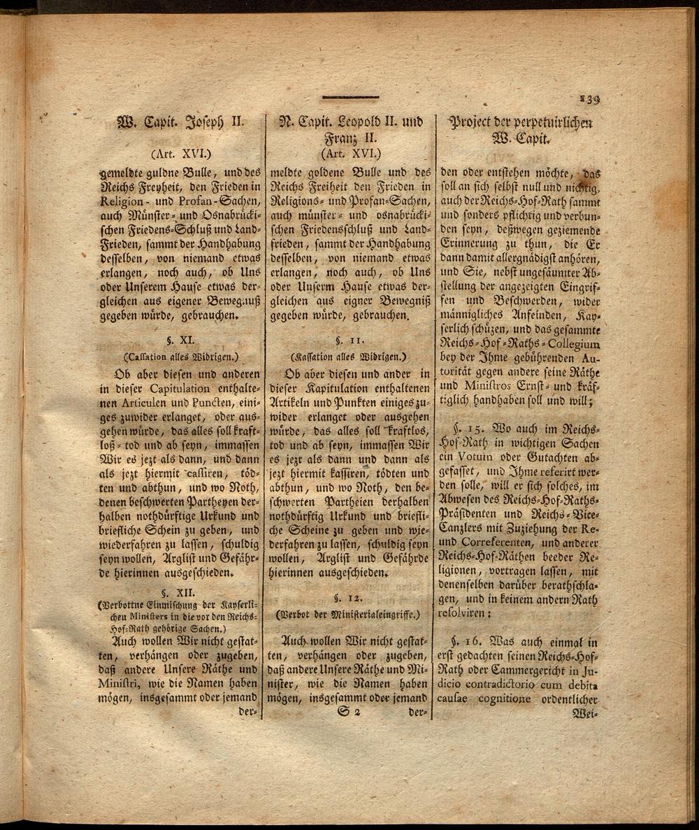 Wahlcapitulation Leopold II. und Franz II. verglichen mit ihren Quellen, nähmlich der beständigen, der vorhergehenden Joseph II. der Fürstlichen und Reichsstädtischen Gravaminibus und Montis, und den Beschwerden und Wünschen des Schwäbischen Reichskreises
