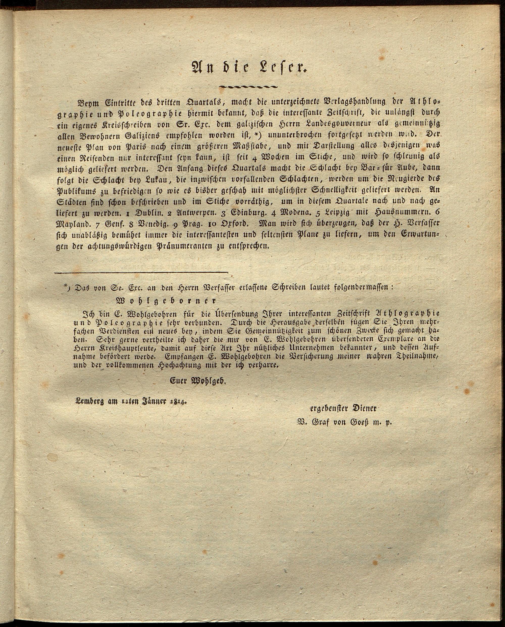 1: Athlographie und Poleographie, oder: Schlachten- und Städte Schilderung : mit schwarzen und illuminirten Planen / von Franz Joseph Jekel