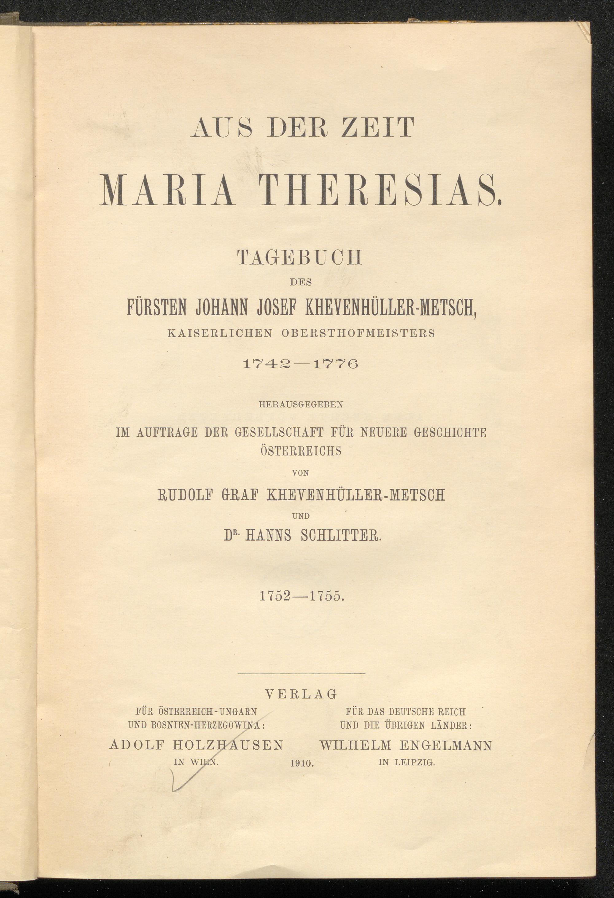 3 (1910) 1752-1755 / herausgegeben von Rudolf Graf Khevenhüller-Metsch und Dr. Hanns Schlitter