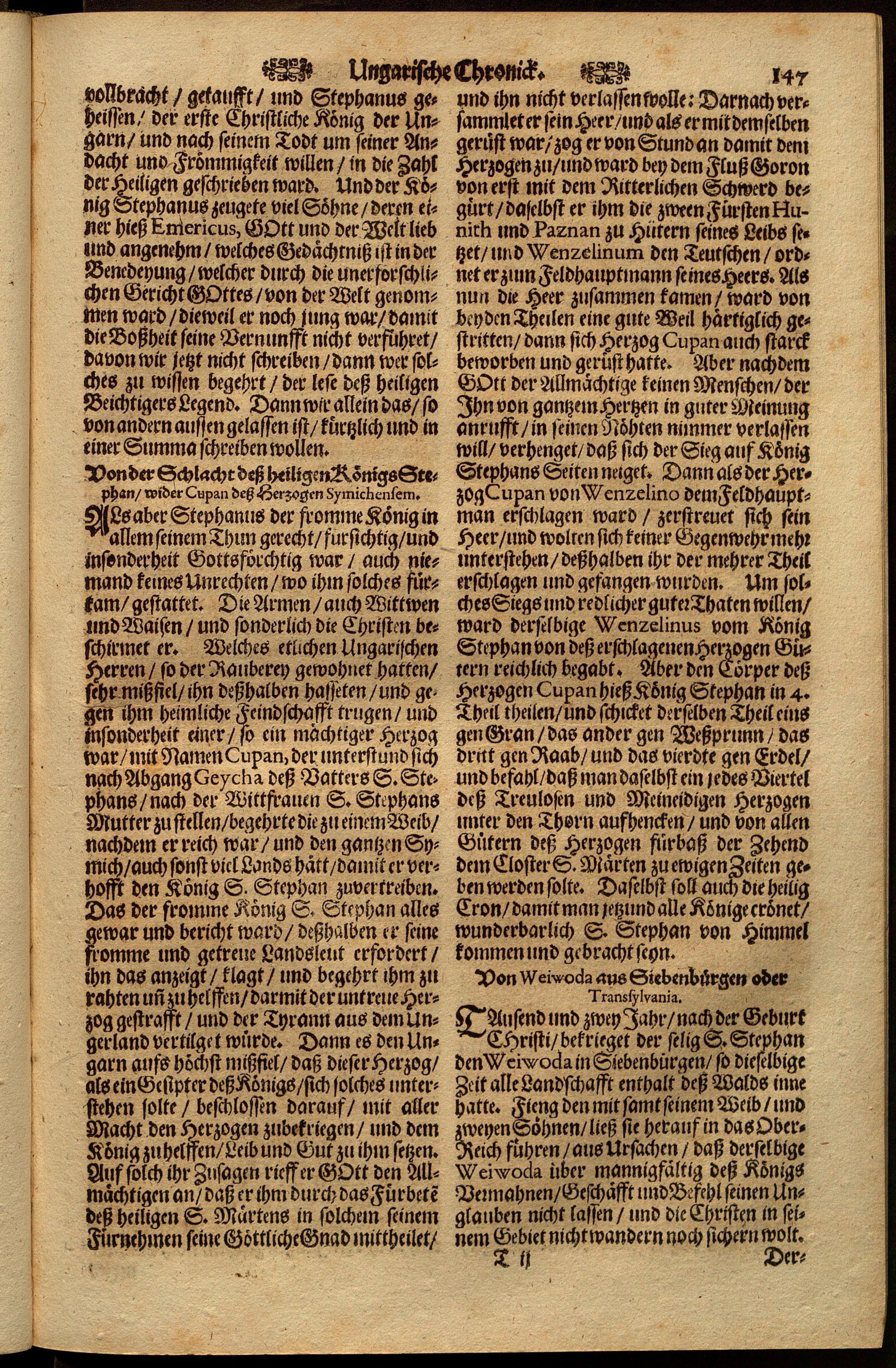 Türckische und Ungarische Chronica, oder kurtze Historische Beschreibung aller deren, zwischen dem Hochlöblichsten Ertz-Hauß Oesterreich ... und ... dem Türcken ... geführter Kriege : so wol in Ober- und Unter-Ungarn, als Siebenbürgen ... wie auch andern denck- und merckwürdigen Sachen, so sich hin und wider, in andern Ländern und Orthen dieser Zeit begeben
