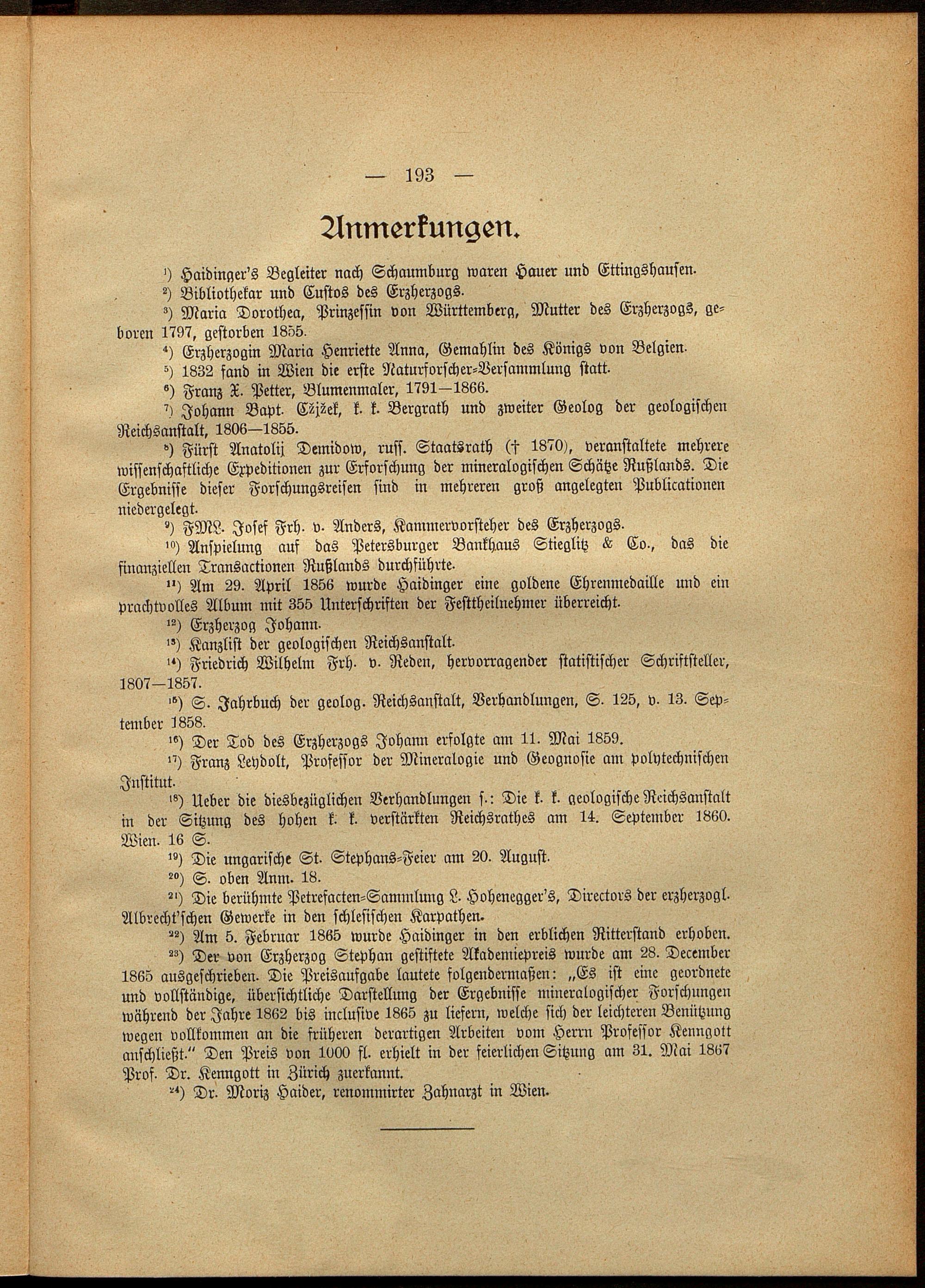 Briefe wissenschaftlichen, hauptsächlich geologischen Inhalts des Erzherzogs Stephan, Begründers der k.k. Geologischen Reichsanstalt, an Wilhelm Haidinger, den ersten Direktor der k.k. Geologischen Reichsanstalt in Wien