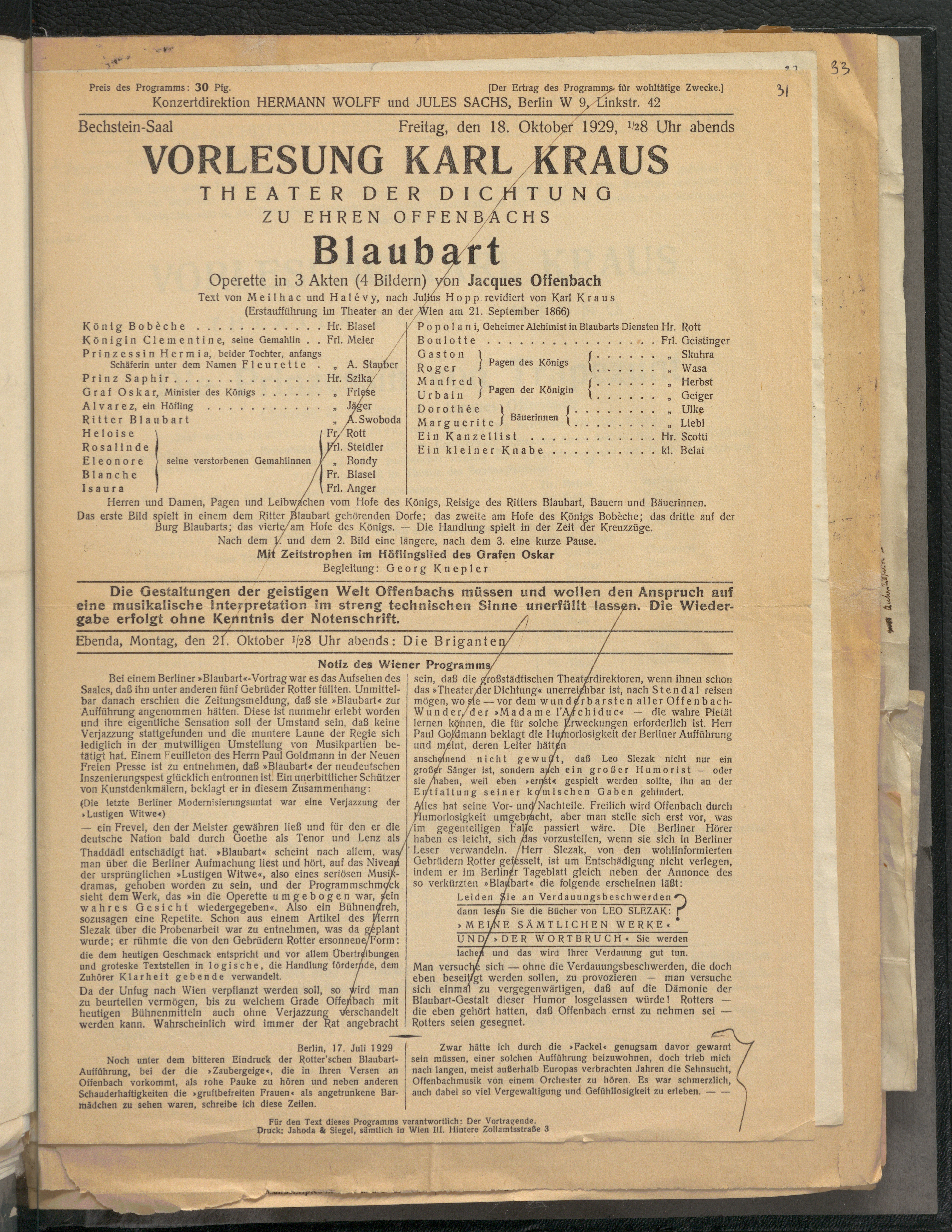 Korrekturbögen, Programme und Manuskripte von Karl Kraus zu Nachträgen der Fackel Nr. aus den Jahren 1929-1932