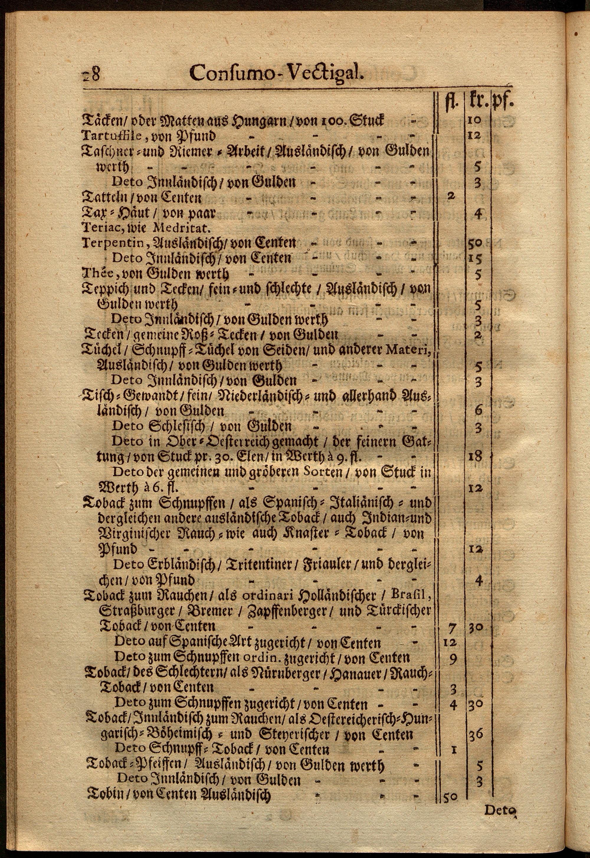 Vectigal Und Mauth-Ordnung : So Von Ihro Röm. Käyserl. auch zu Hispanien, Hungarn und Böheim, Königl. Majestätt Carolo VI. Ertz-Hertzogen zu Oesterreich, c Unsern allergnädigsten Herrn verneuert worden : Was nemlichen hinführo von dem I.ten Januarii, des 1726. Jahrs anzufangen