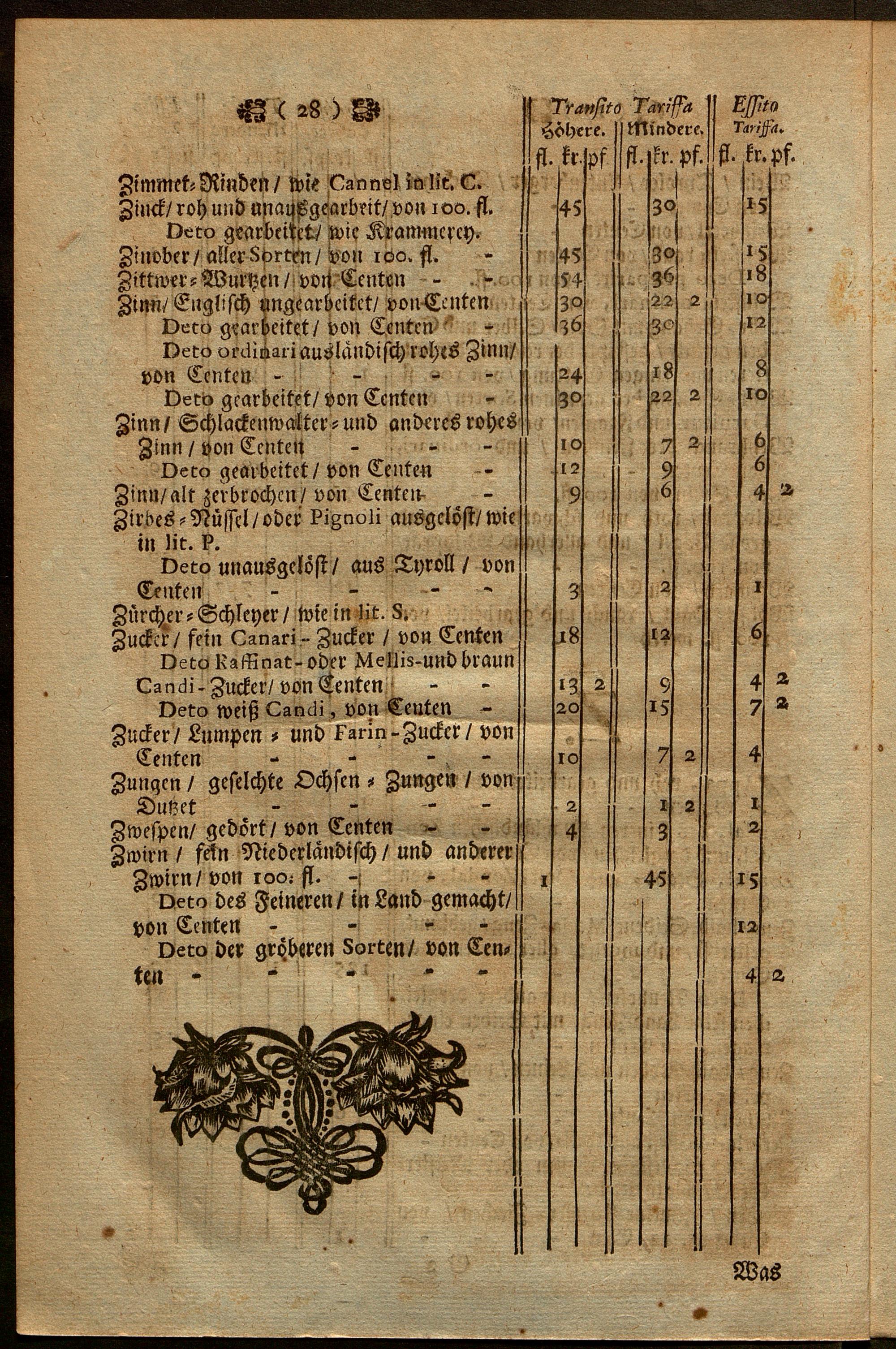 Vectigal Und Mauth-Ordnung : So Von Ihro Röm. Käyserl. auch zu Hispanien, Hungarn und Böheim, Königl. Majestätt Carolo VI. Ertz-Hertzogen zu Oesterreich, c Unsern allergnädigsten Herrn verneuert worden : Was nemlichen hinführo von dem I.ten Januarii, des 1726. Jahrs anzufangen