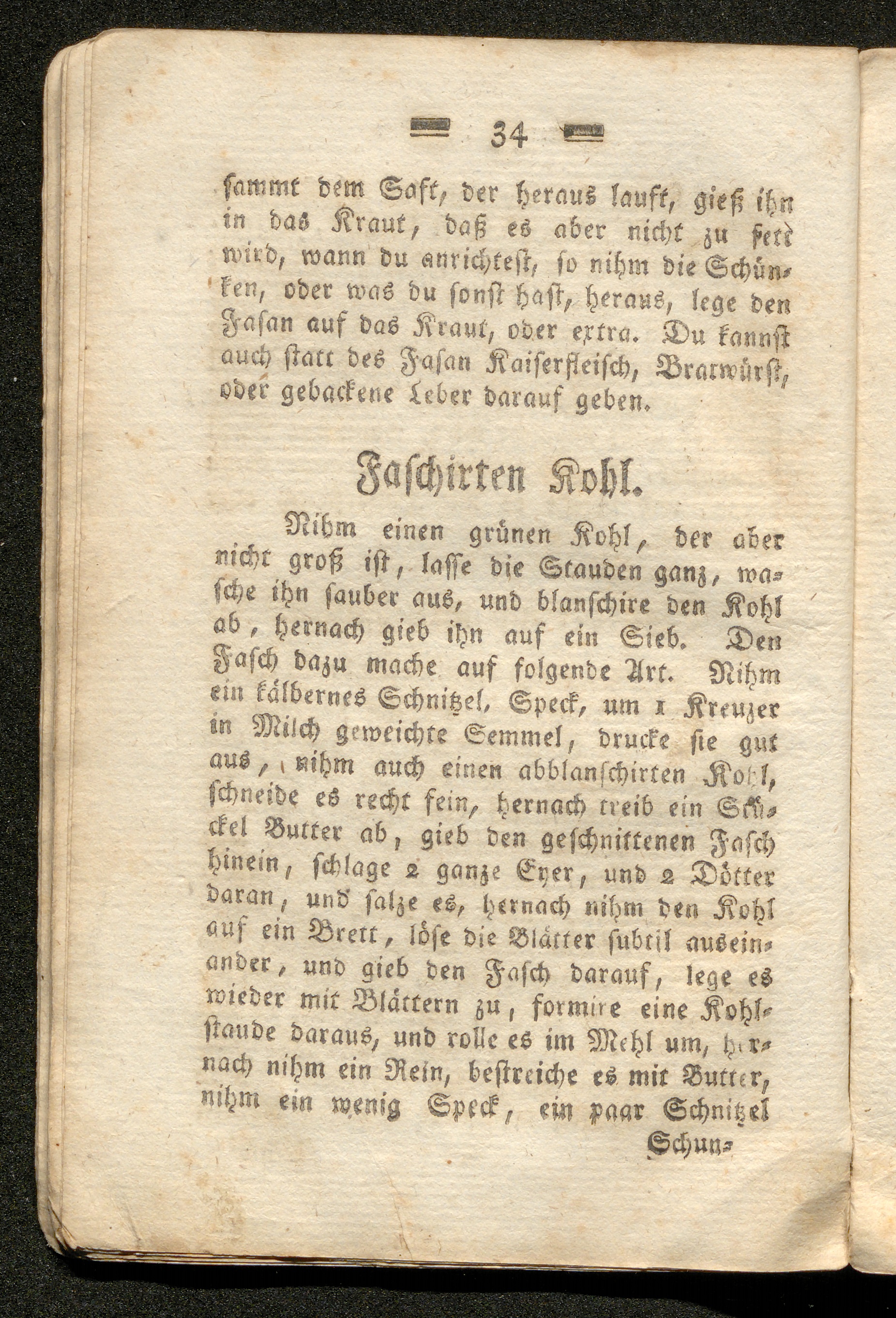 Kleines Kochbuch, oder Sammlung einiger wenigen, aber ganz besondern ausgesuchten Speisen, nach heutigem wienerischen Geschmacke : Eingerichtet für alle Gattungen der Stände, durchgehends neu, selbst verfaßt, und zum erstenmale im Druck herausgegeben / von Marianna Wieserin