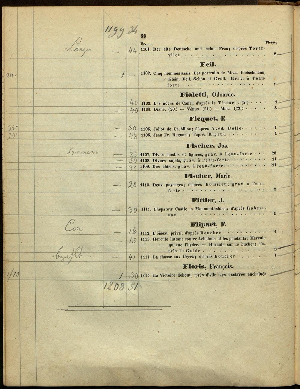 1 (1842) A-L, dont les pièces, soigneusement décrites dans le présent Catalogue seront mises aux enchères et vendues au plus offrant le 12. Décembre 1842 et jours suivans ... / sous la direction de la maison Artaria & Compagnie, Marchands de beaux Arts, Rue: Kohlmarkt Nr. 1151, à Vienne
