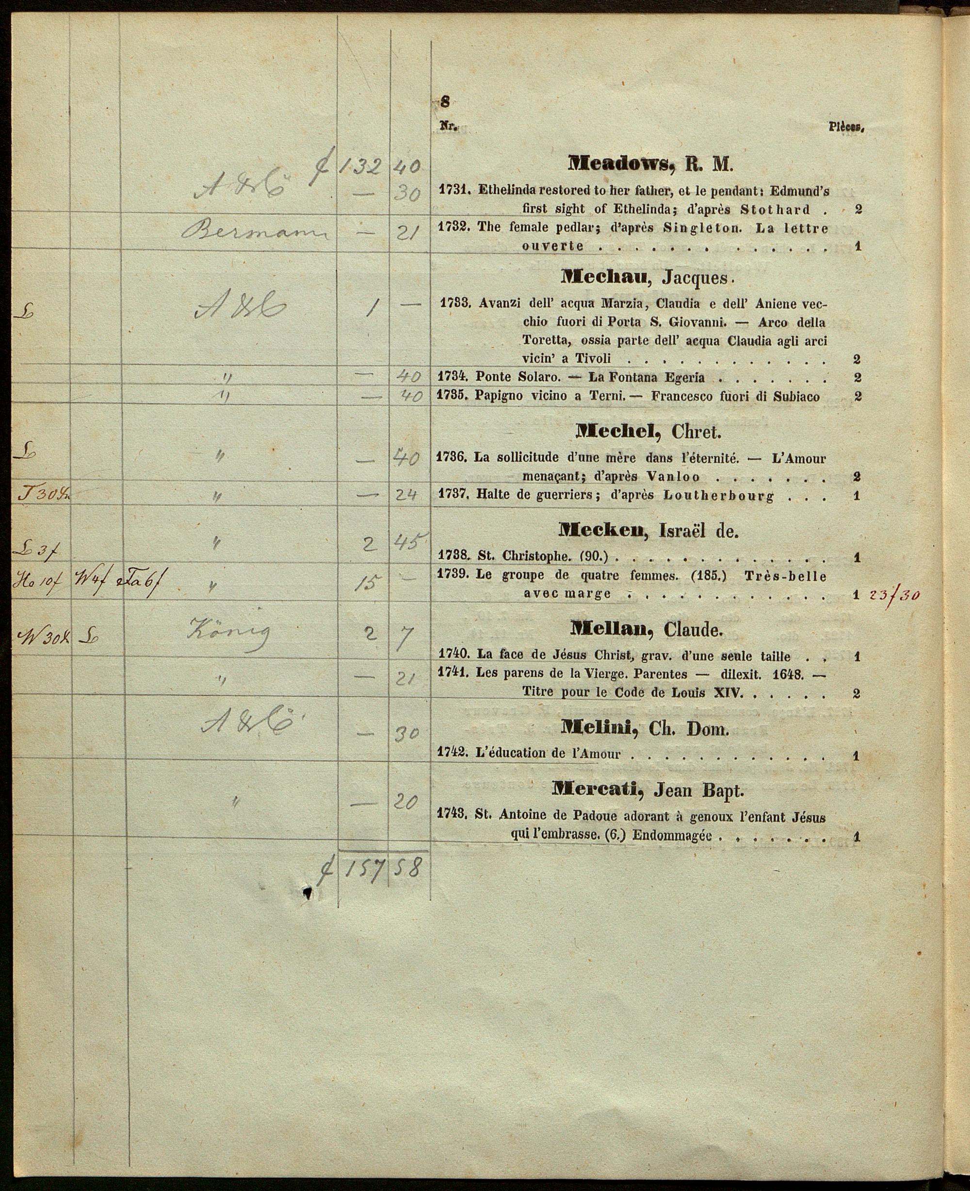 2 (1843) M-Z, suivies d'un petit nombre de dessins originaux, et d'une Appendice ... dont les pièces soigneusement décrites dans le présent Catalogue seront mises aux enchères et vendues au plus offrant le 6. Mars 1843 et jours suivans ... / sous la direction de la maison Artaria & Compagnie, Marchands de beaux Arts, Rue: Kohlmarkt Nr. 1151, à Vienne