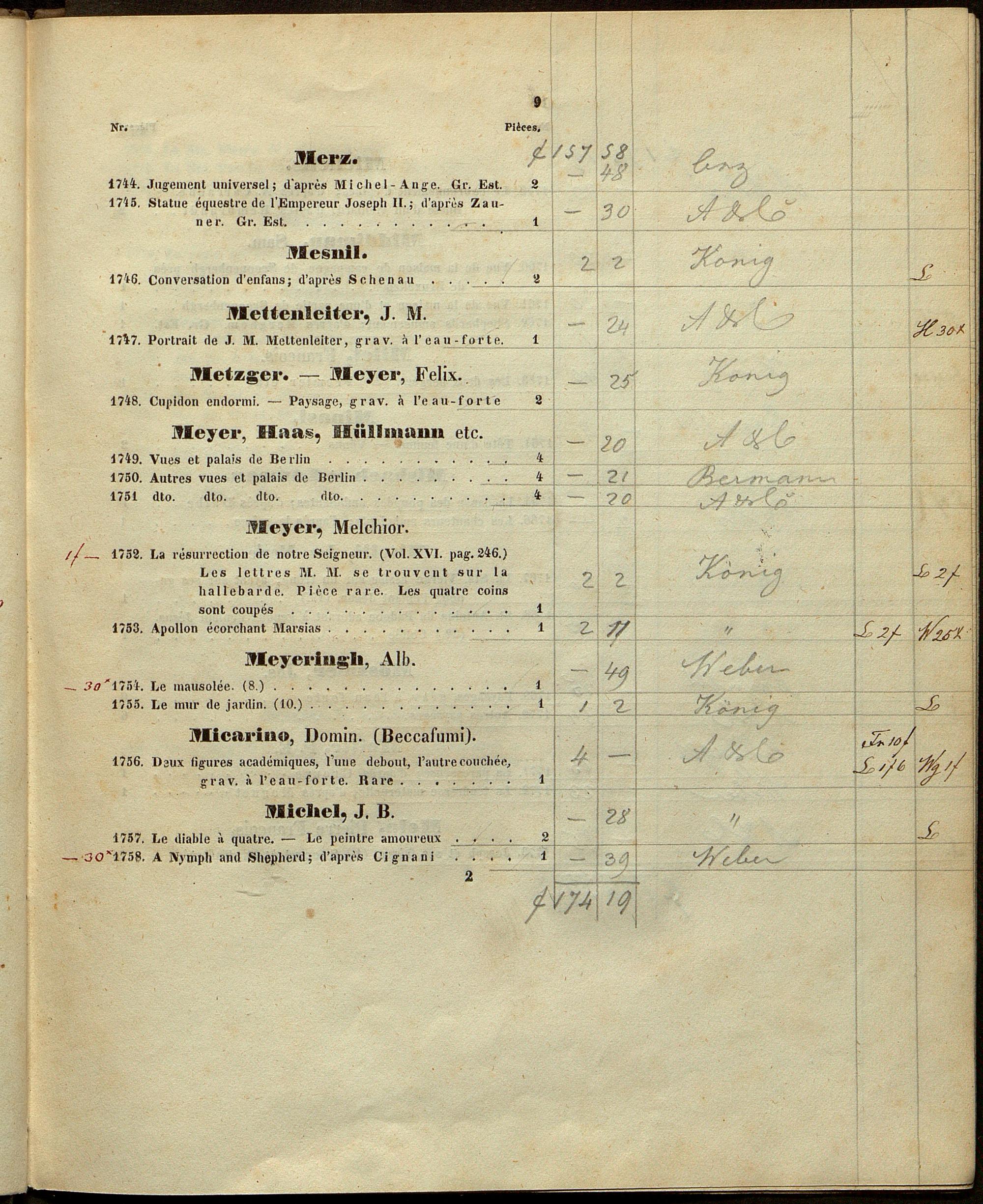2 (1843) M-Z, suivies d'un petit nombre de dessins originaux, et d'une Appendice ... dont les pièces soigneusement décrites dans le présent Catalogue seront mises aux enchères et vendues au plus offrant le 6. Mars 1843 et jours suivans ... / sous la direction de la maison Artaria & Compagnie, Marchands de beaux Arts, Rue: Kohlmarkt Nr. 1151, à Vienne