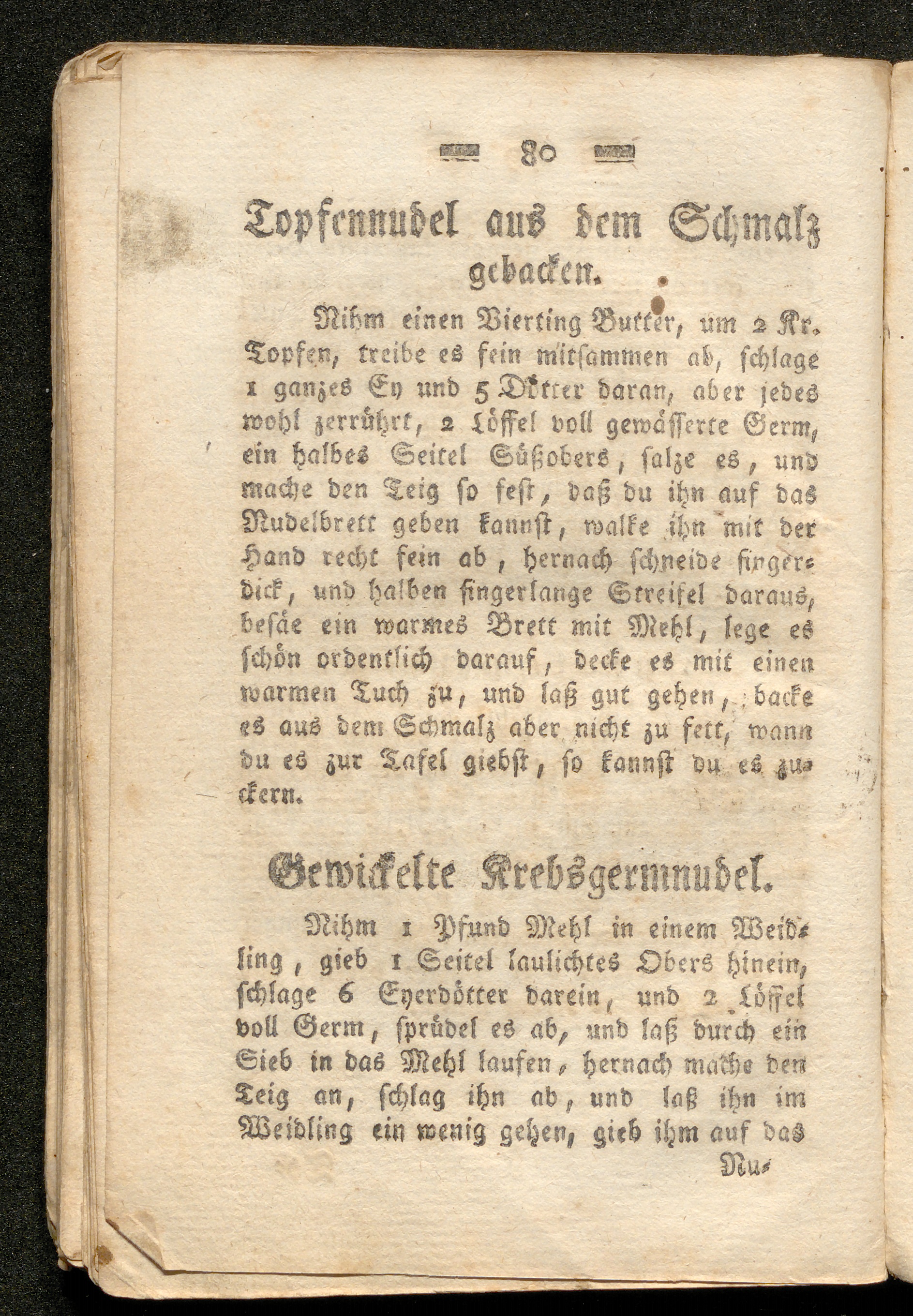 Kleines Kochbuch, oder Sammlung einiger wenigen, aber ganz besondern ausgesuchten Speisen, nach heutigem wienerischen Geschmacke : Eingerichtet für alle Gattungen der Stände, durchgehends neu, selbst verfaßt, und zum erstenmale im Druck herausgegeben / von Marianna Wieserin