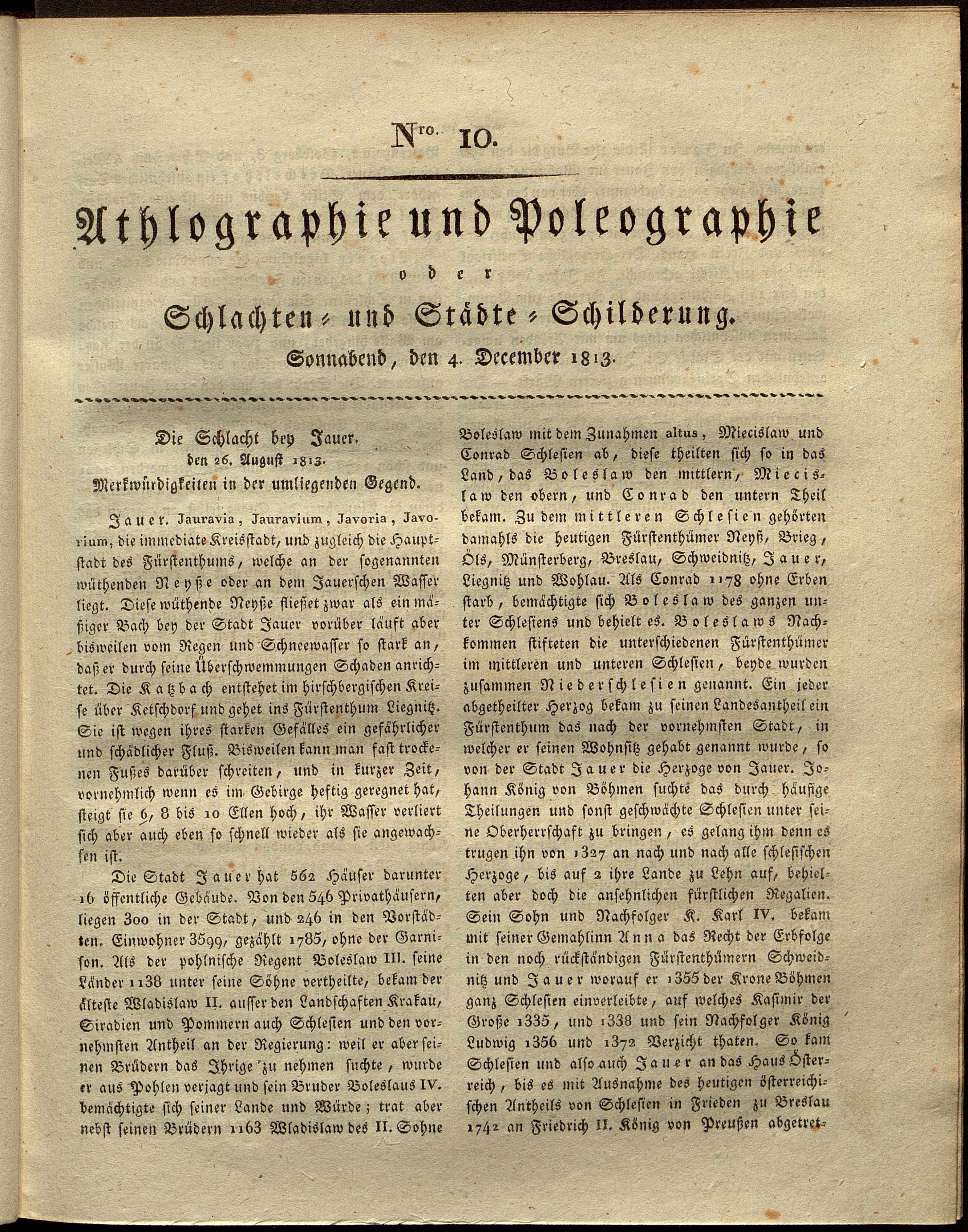 1: Athlographie und Poleographie, oder: Schlachten- und Städte Schilderung : mit schwarzen und illuminirten Planen / von Franz Joseph Jekel
