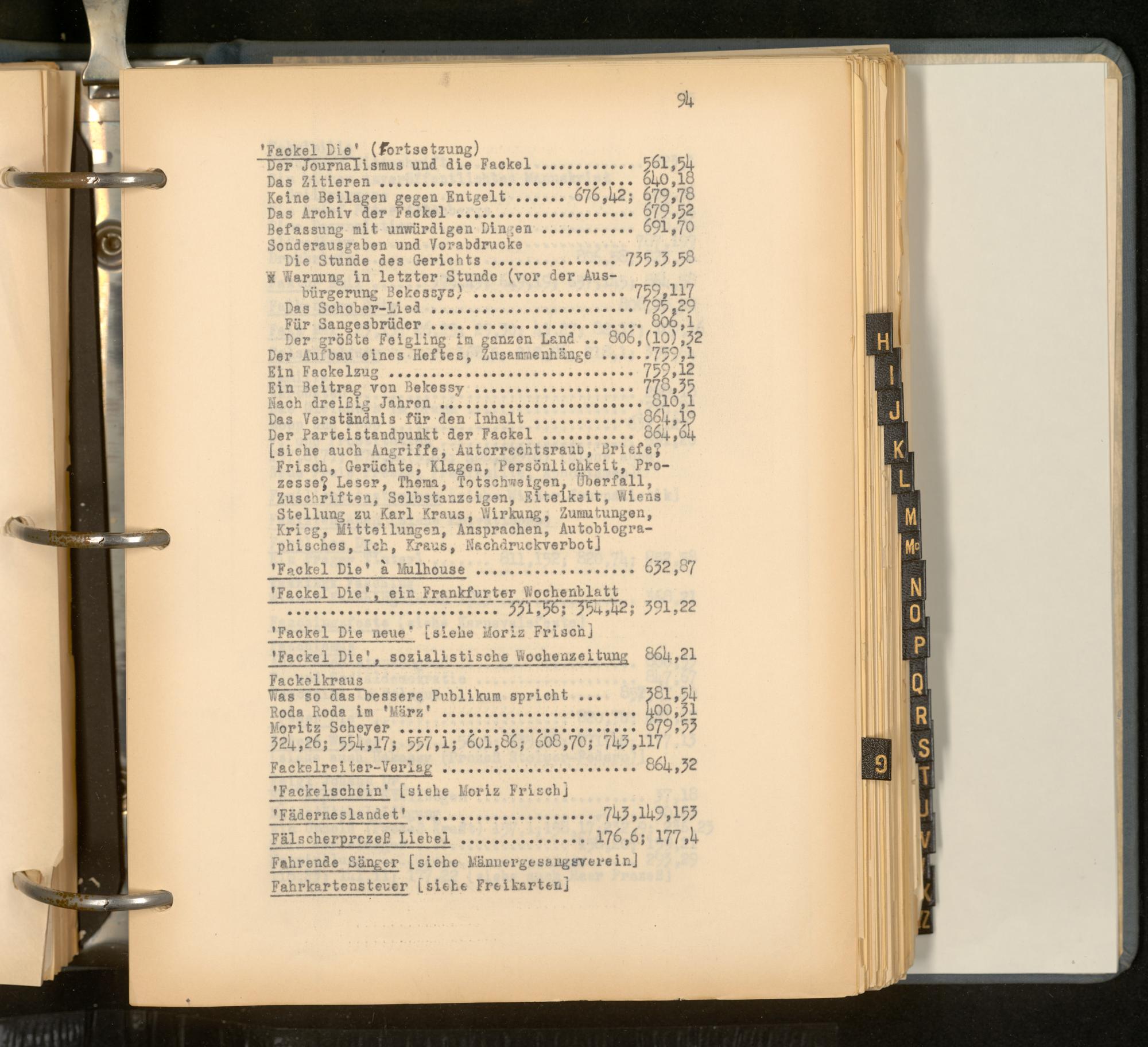 Alphabetisches Sach- und Personenregister zu Fackel Nr. 1-872