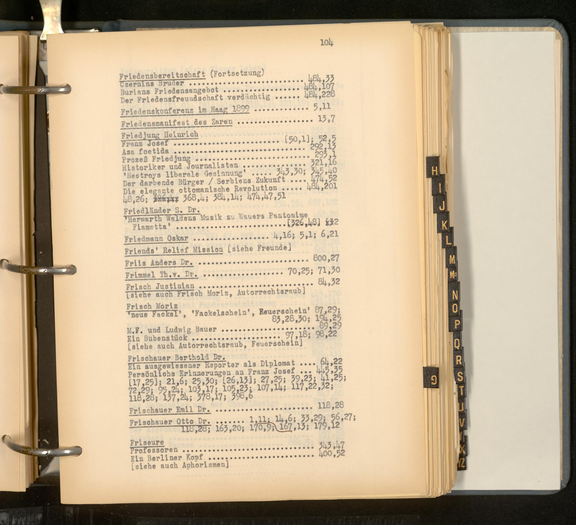 Alphabetisches Sach- und Personenregister zu Fackel Nr. 1-872