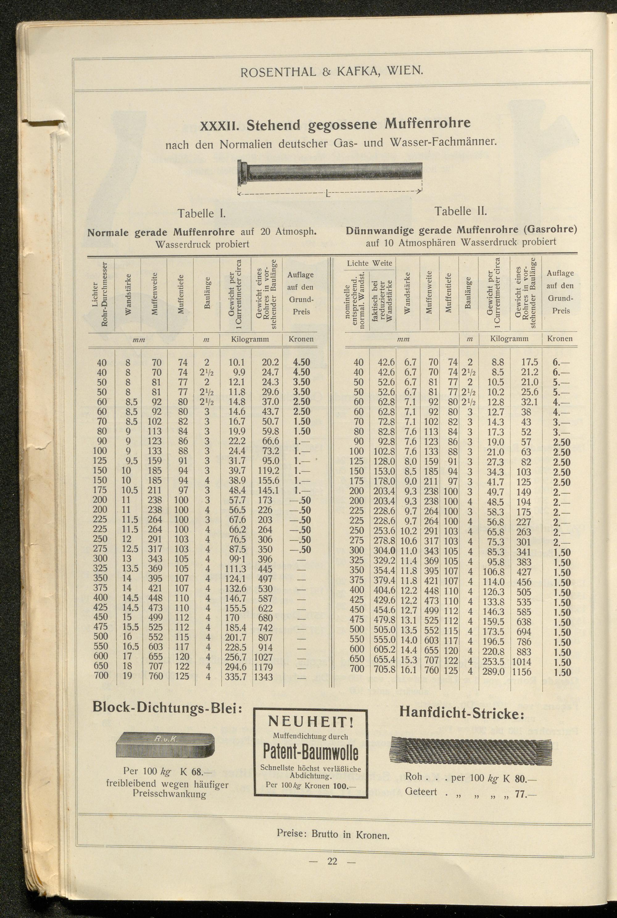 Musterbuch nebst Preisliste über sämtliche Artikel für Gas- und Wasserleitungen sowie über Kanalisations-Gegenstände und Pumpen : Jänner 1908 / Rosenthal & Kafka (Glogau & Co.), Wien I.
