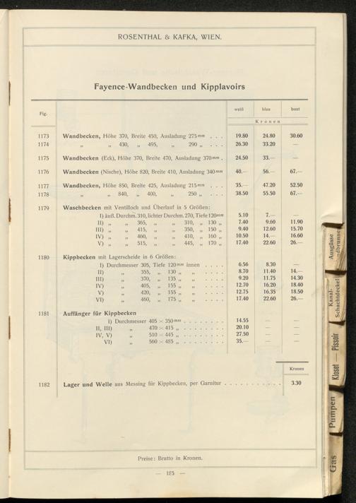 Musterbuch nebst Preisliste über sämtliche Artikel für Gas- und Wasserleitungen sowie über Kanalisations-Gegenstände und Pumpen : Jänner 1908 / Rosenthal & Kafka (Glogau & Co.), Wien I.