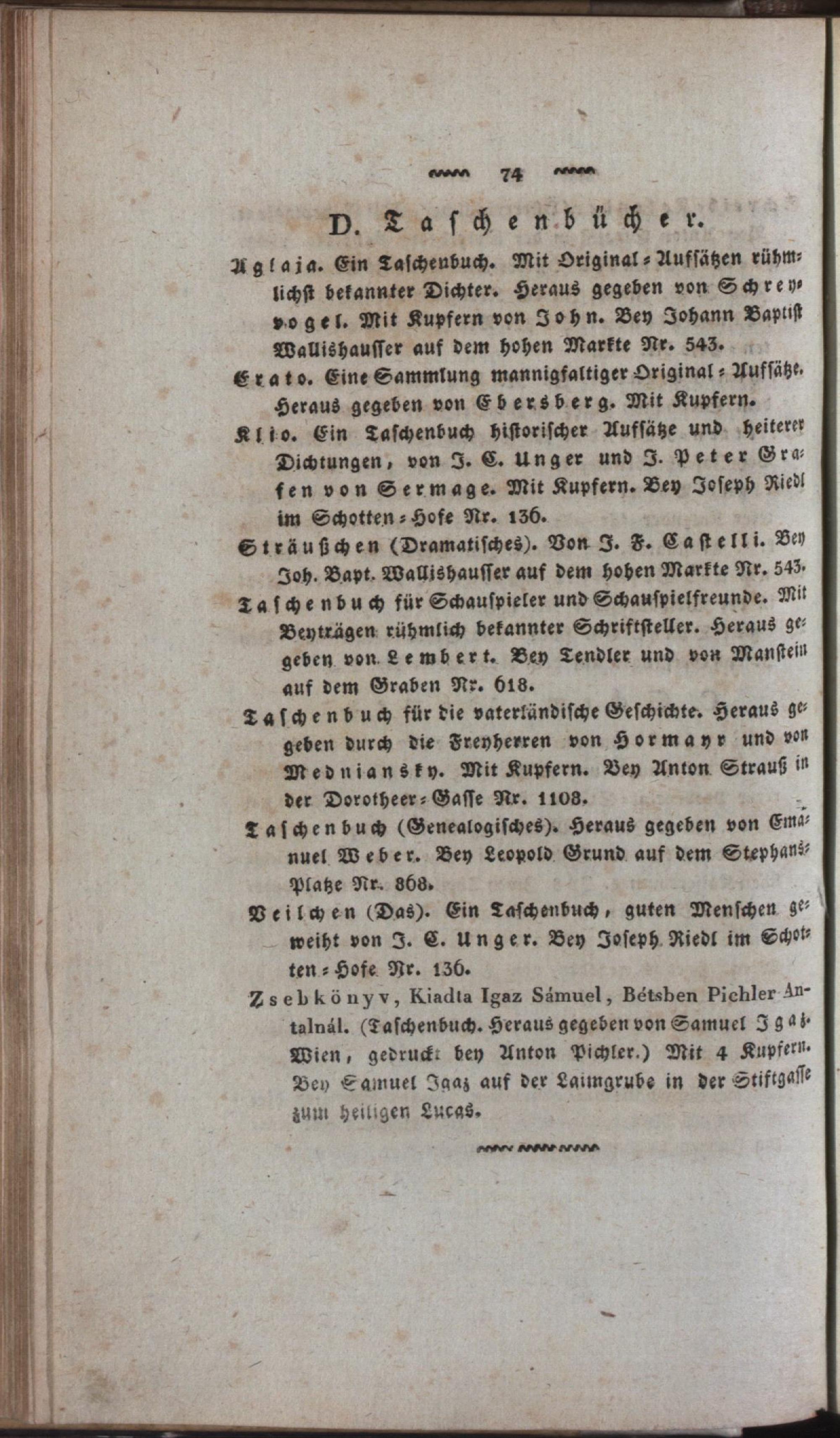 Wiens lebende Schriftsteller, Künstler und Dilettanten im Kunstfache : Dann Bücher-, Kunst- und Naturschätze und andere Sehenswürdigkeiten dieser Haupt- und Residenz-Stadt ; Ein Handbuch für Einheimische und Fremde / Heraus gegeben von Franz Heinrich Böckh