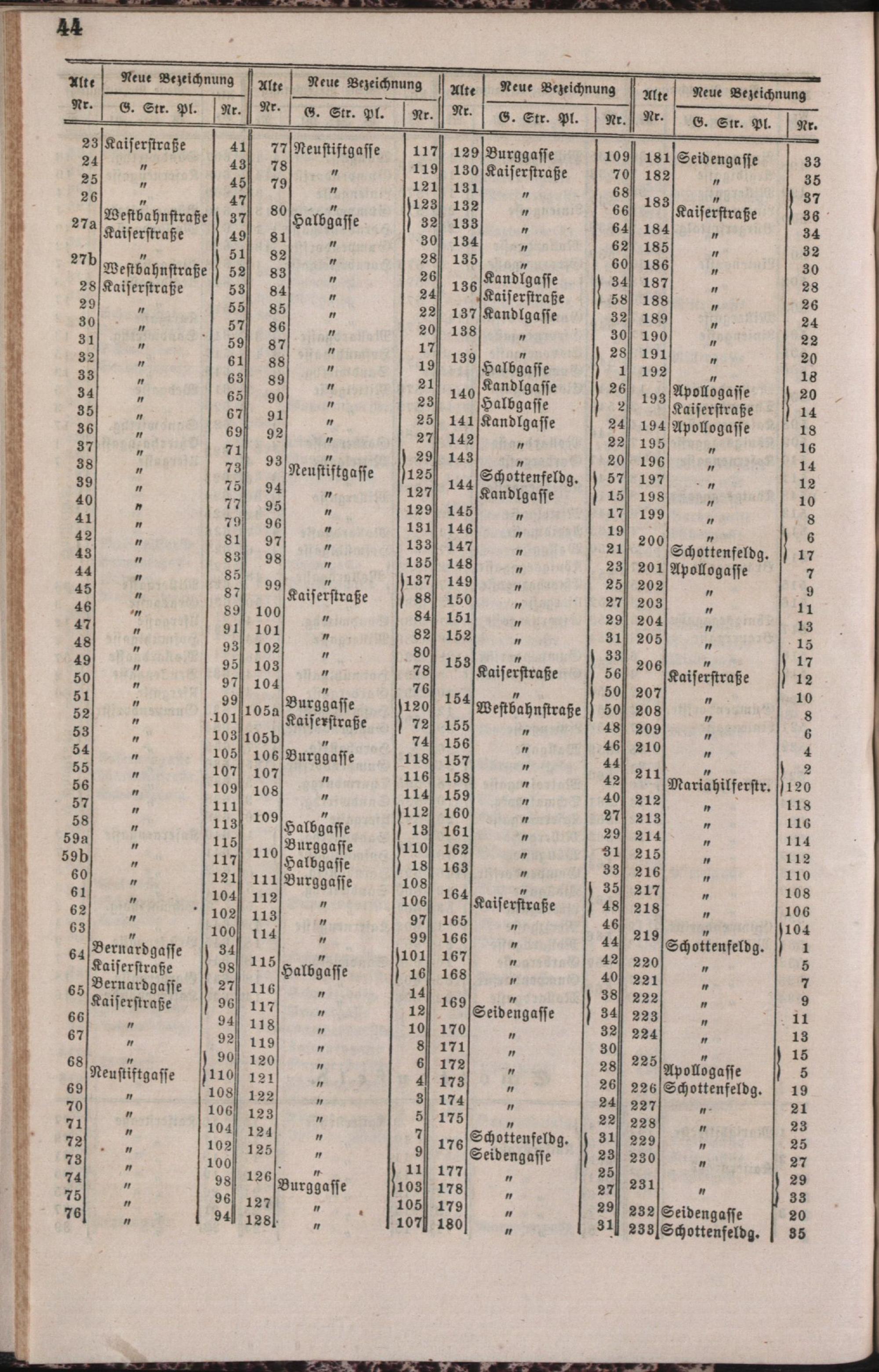 Vollständiges Orientirungs-Häuserschema zur neuen Häuser-, Gassen- und Strassen-Ordnung der k. k. Reichshaupt- und Residenzstadt Wien / hrsg. vom Redaktions-Comité des Krippen-Kalenders 1864