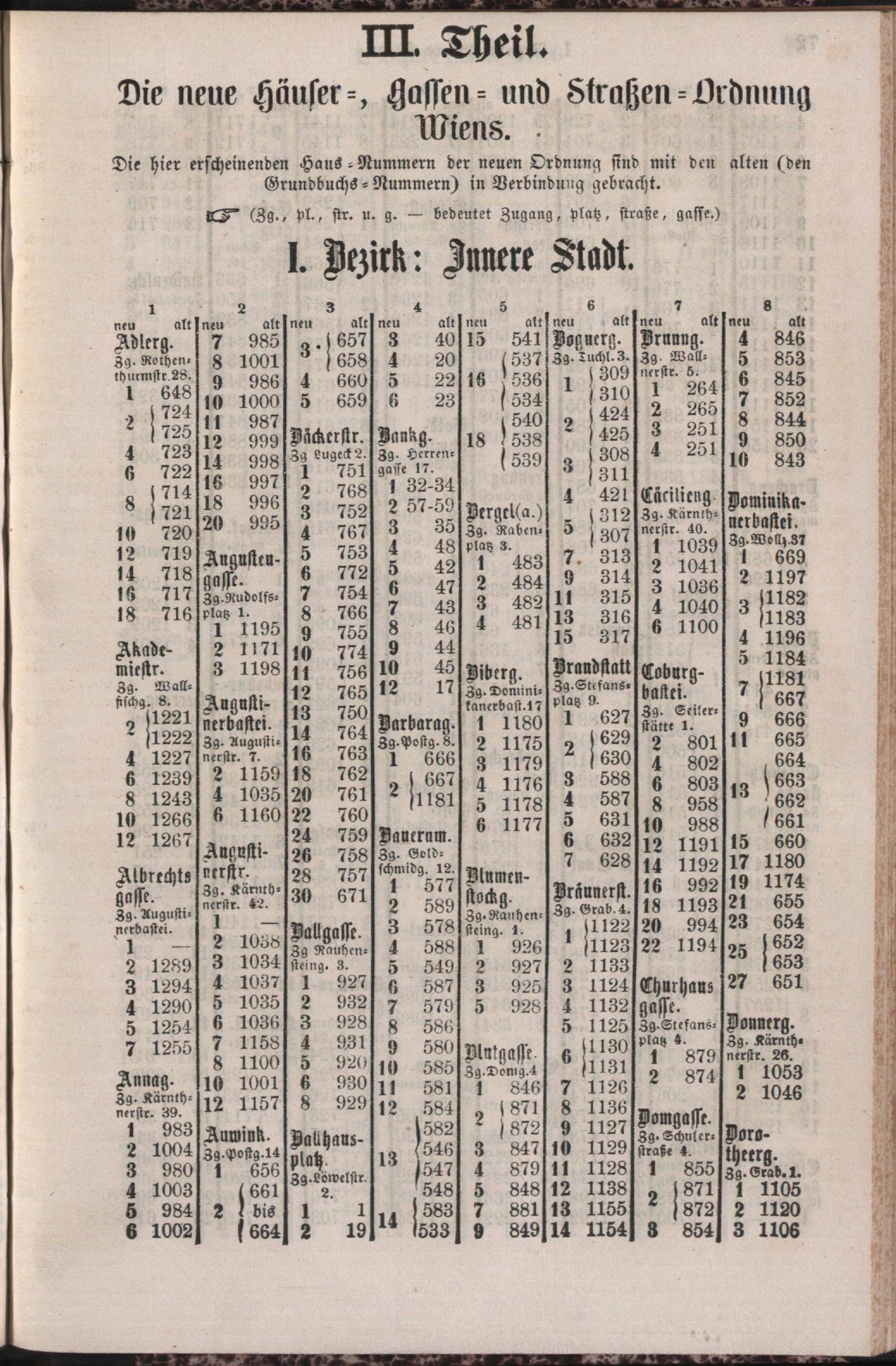 Vollständiges Orientirungs-Häuserschema zur neuen Häuser-, Gassen- und Strassen-Ordnung der k. k. Reichshaupt- und Residenzstadt Wien / hrsg. vom Redaktions-Comité des Krippen-Kalenders 1864
