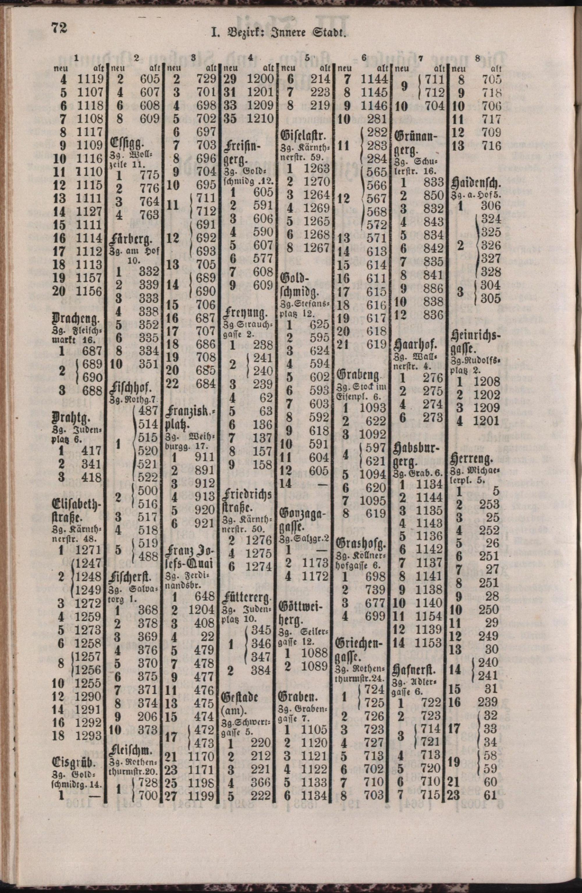 Vollständiges Orientirungs-Häuserschema zur neuen Häuser-, Gassen- und Strassen-Ordnung der k. k. Reichshaupt- und Residenzstadt Wien / hrsg. vom Redaktions-Comité des Krippen-Kalenders 1864
