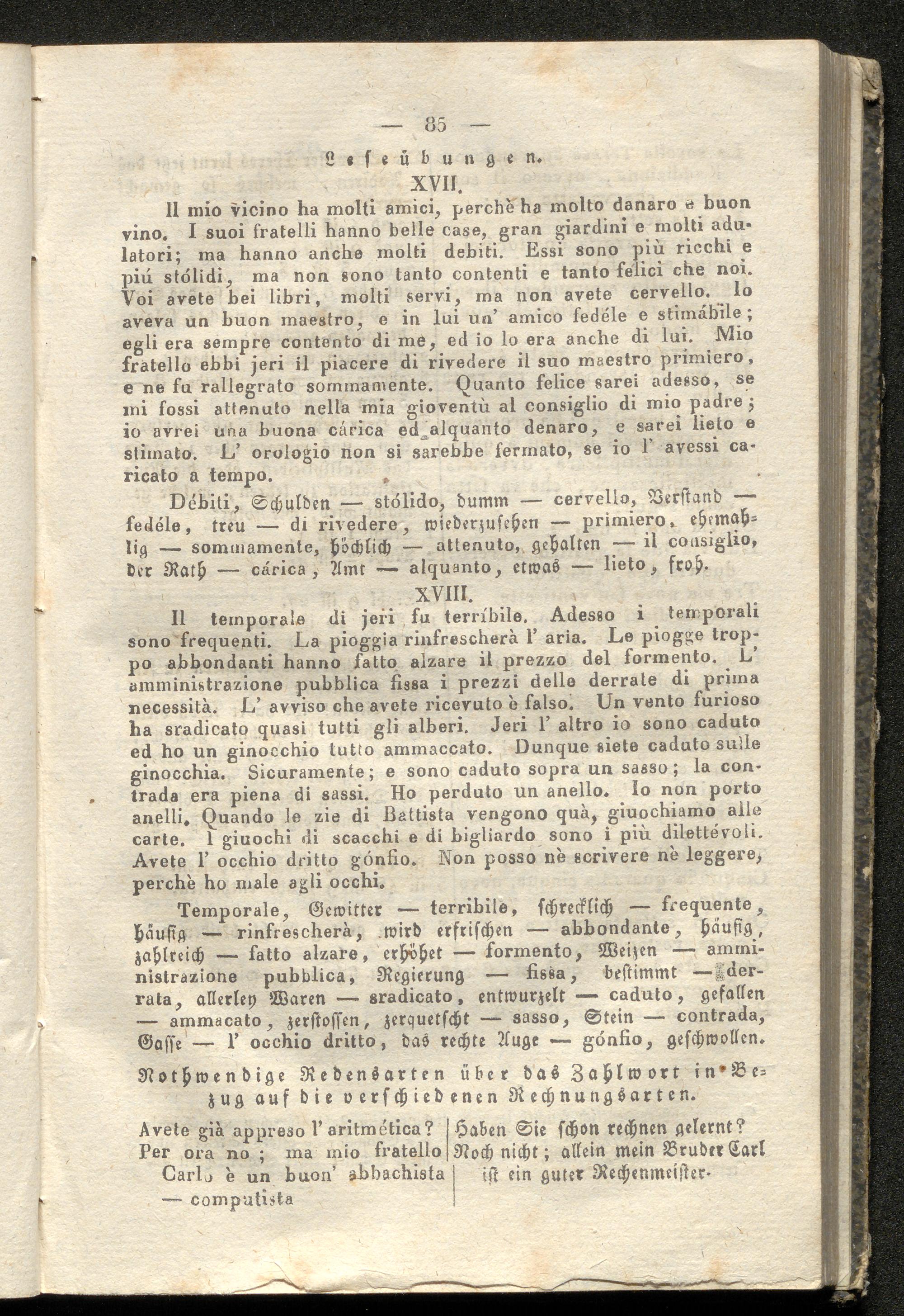 Ganz neuer Stufengang beym Unterrichte in der italienischen Sprache oder Elementar-Sprachlehre für Kinder und Erwachsene, welche diese Sprache auf eine leichte und angenehme Art in kurzer Zeit erlernen wollen : Enthaltend: Die wichtigsten Regeln der italienischen Sprache durch viele Uebungsbeyspiele veranschaulicht ... / bearb. von Mathias Stix