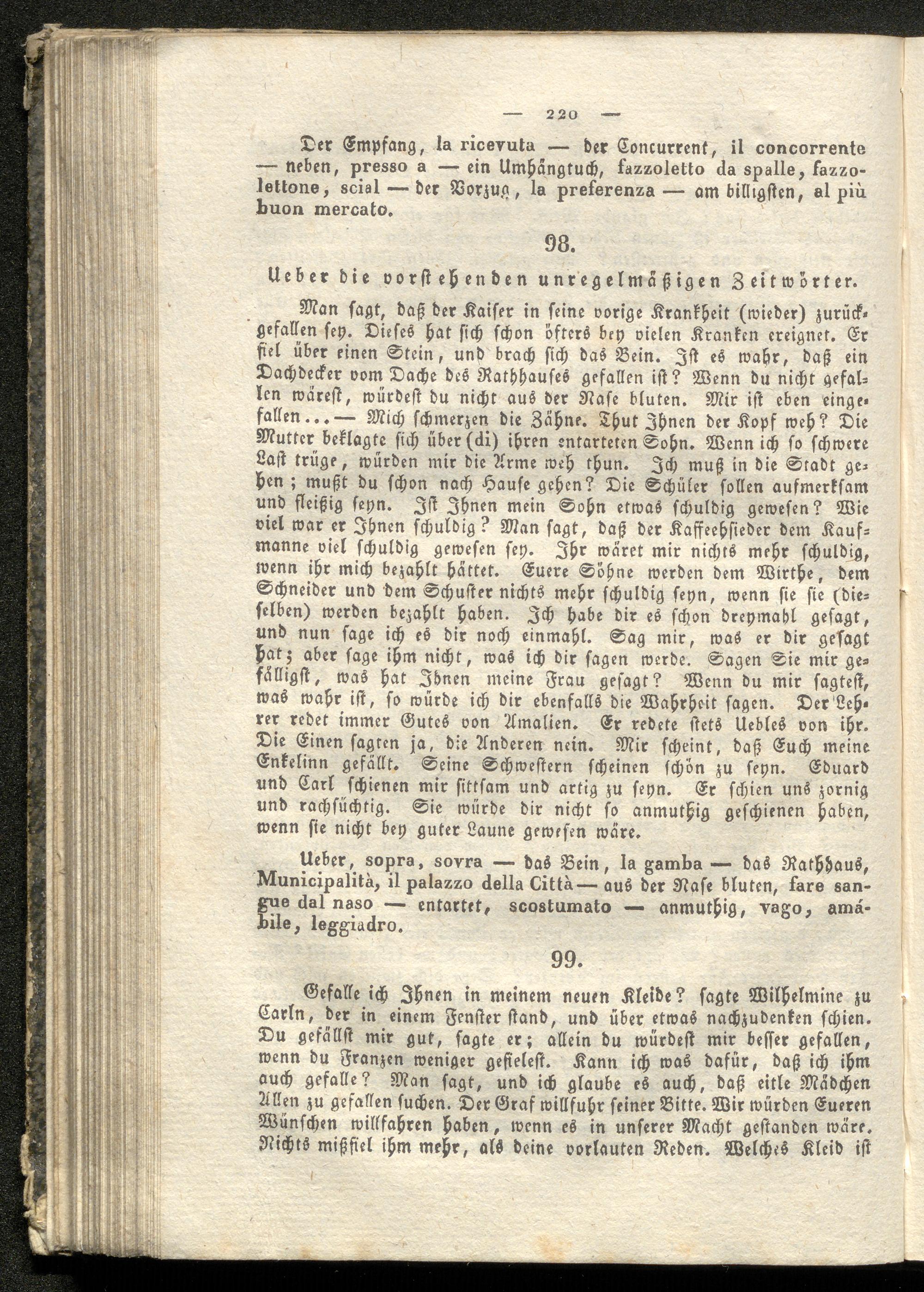 Ganz neuer Stufengang beym Unterrichte in der italienischen Sprache oder Elementar-Sprachlehre für Kinder und Erwachsene, welche diese Sprache auf eine leichte und angenehme Art in kurzer Zeit erlernen wollen : Enthaltend: Die wichtigsten Regeln der italienischen Sprache durch viele Uebungsbeyspiele veranschaulicht ... / bearb. von Mathias Stix