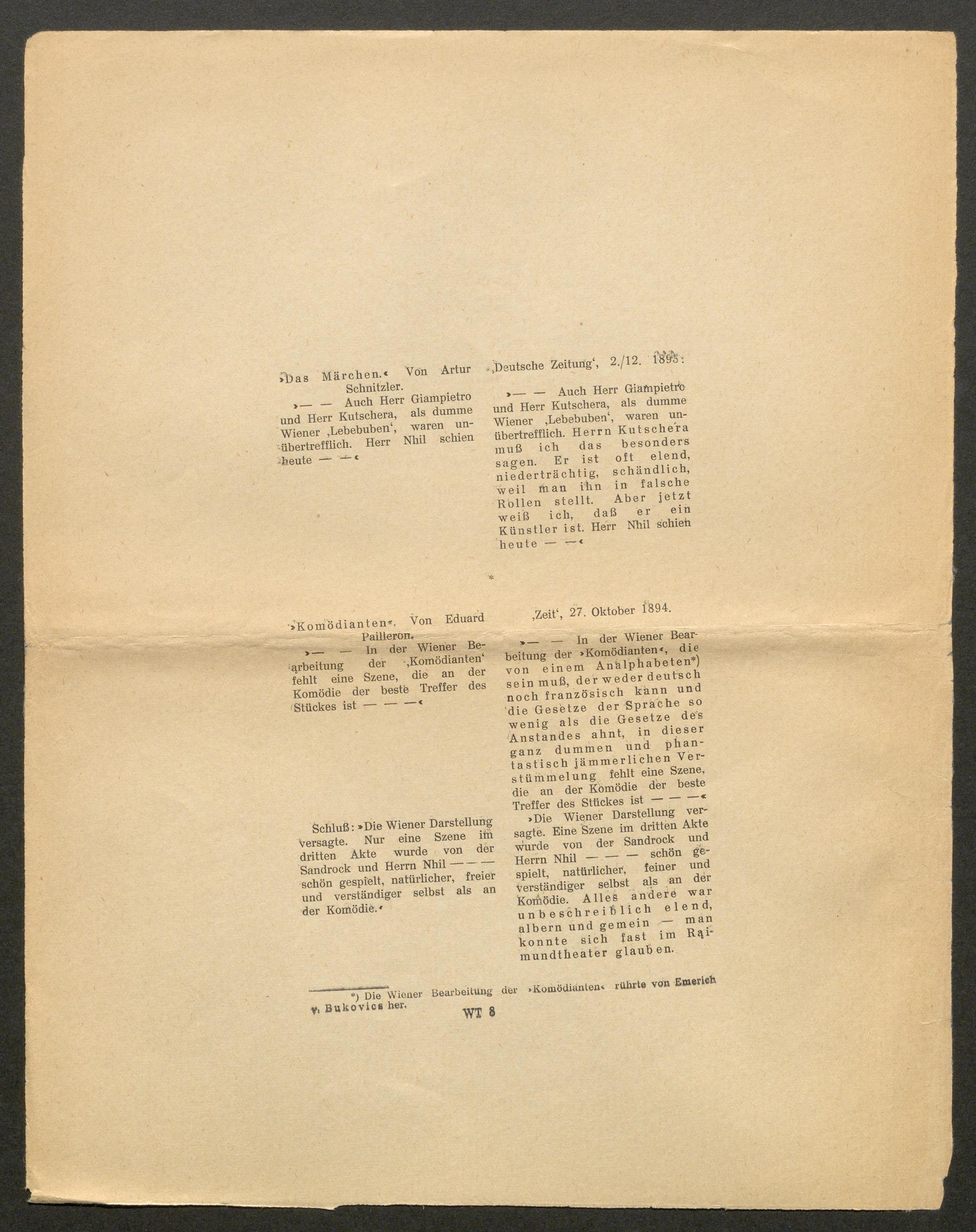 Korrigiertes Material, Korrekturbögen und "Abgelegte" zu "Kultur und Presse"