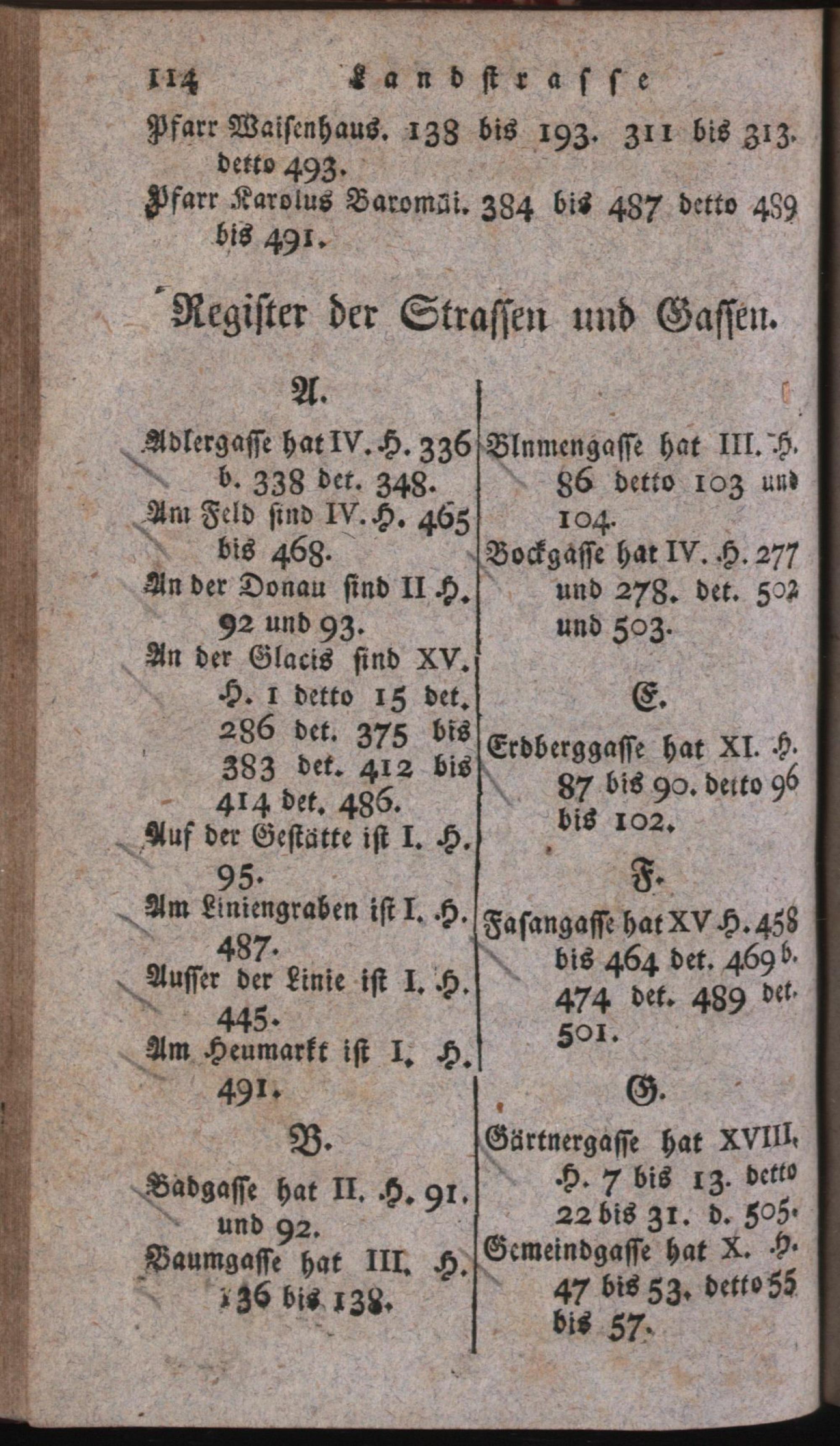 Vollständiges Verzeichniß aller in der k. k. Haupt- und Residenz-Stadt Wien inner denen Linien befindlichen numerirten Häuser deren Eigenthümer, Strassen, Gässen, Plätze, und Schilder / Verfaßt von Joseph Johann Grosbauer, Magistratischen Konscriptions- und Kundschafts-Koroberirungs-Amtskommissär