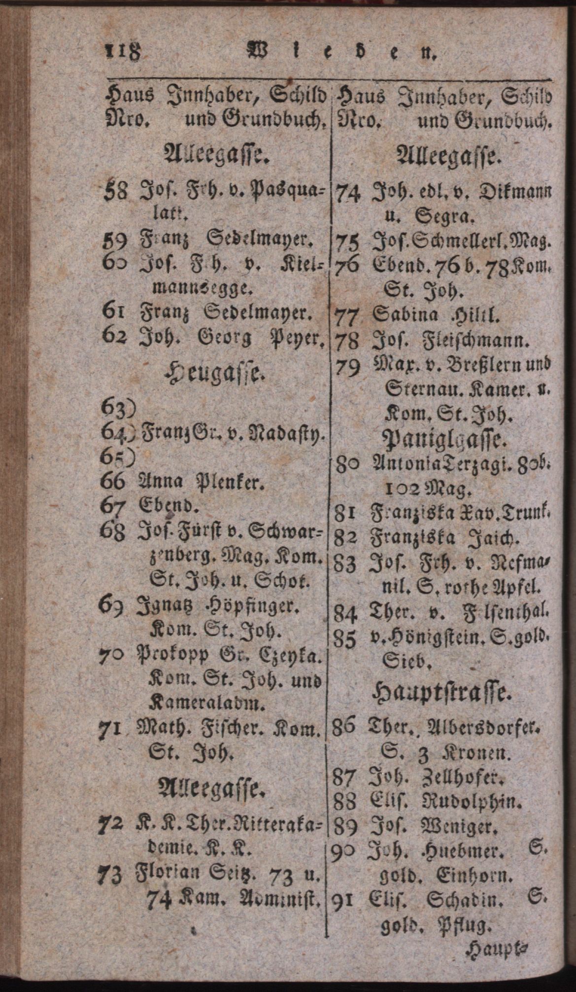 Vollständiges Verzeichniß aller in der k. k. Haupt- und Residenz-Stadt Wien inner denen Linien befindlichen numerirten Häuser deren Eigenthümer, Strassen, Gässen, Plätze, und Schilder / Verfaßt von Joseph Johann Grosbauer, Magistratischen Konscriptions- und Kundschafts-Koroberirungs-Amtskommissär