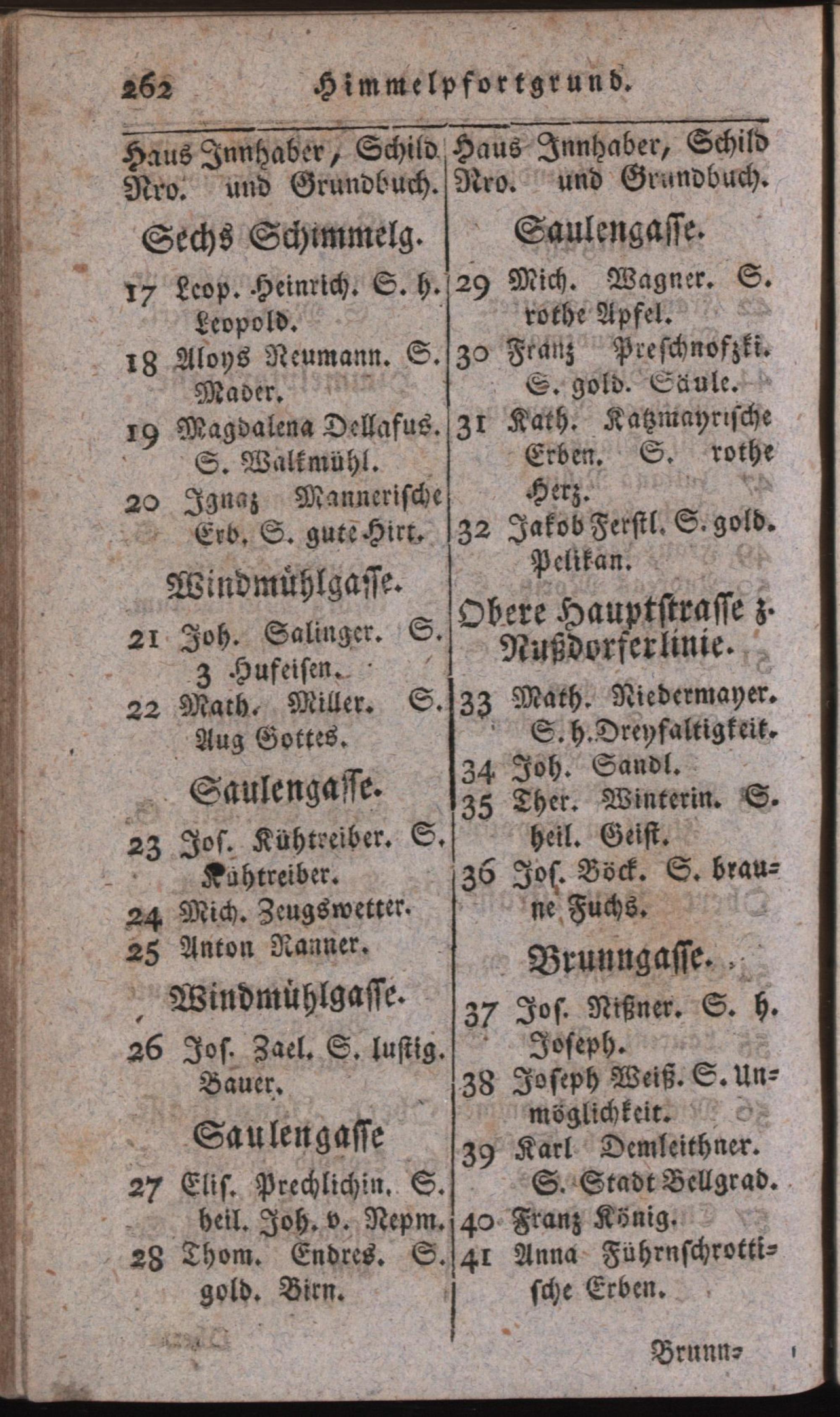 Vollständiges Verzeichniß aller in der k. k. Haupt- und Residenz-Stadt Wien inner denen Linien befindlichen numerirten Häuser deren Eigenthümer, Strassen, Gässen, Plätze, und Schilder / Verfaßt von Joseph Johann Grosbauer, Magistratischen Konscriptions- und Kundschafts-Koroberirungs-Amtskommissär