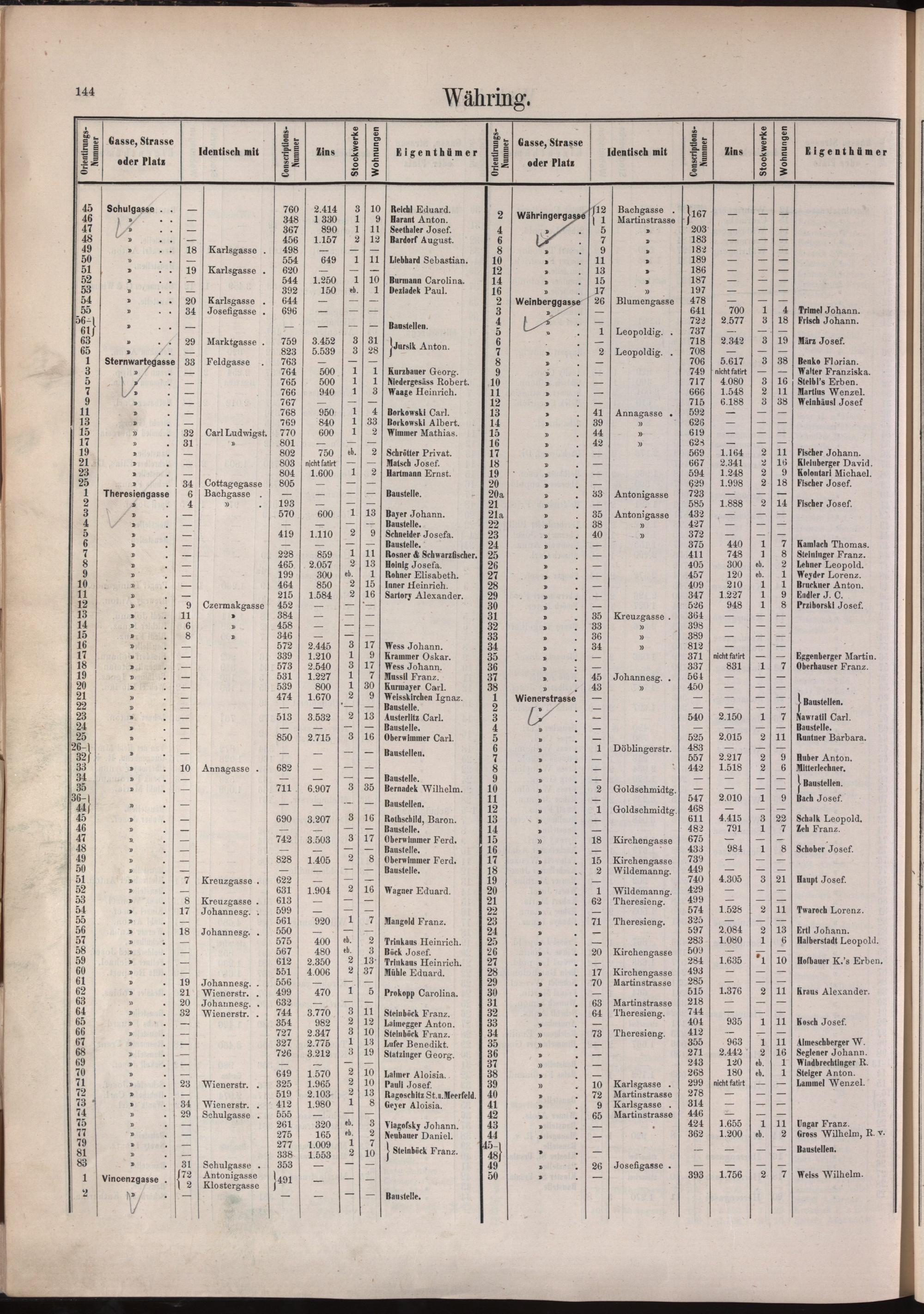Häuser-Schema der K. K. Reichs-Haupt- und Residenzstadt Wien : mit deren zehn Bezirken und den Vororten Simmering, Untermeidling, Obermeidling, Gaudenzdorf, Fünfhaus, Sechshaus, Neulerchenfeld, Ottakring, Hernals, Währing, Weinhaus, Gersthof, Unterdöbling, Oberdöbling, Heiligenstadt, Nussdorf, Brigittenau, Zwischenbrücken, Schüttl, Kriau, Floridsdorf und die neuprojectirte Donaustadt in 15 Plänen / hrsg. von Peter Smöch