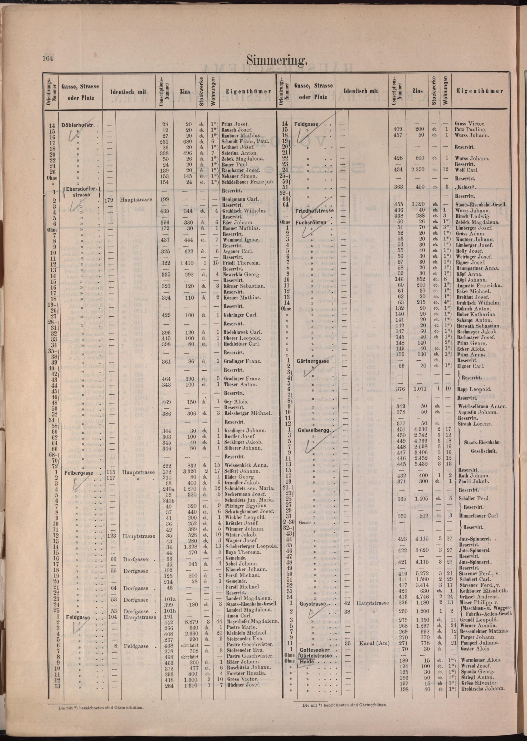 Häuser-Schema der K. K. Reichs-Haupt- und Residenzstadt Wien : mit deren zehn Bezirken und den Vororten Simmering, Untermeidling, Obermeidling, Gaudenzdorf, Fünfhaus, Sechshaus, Neulerchenfeld, Ottakring, Hernals, Währing, Weinhaus, Gersthof, Unterdöbling, Oberdöbling, Heiligenstadt, Nussdorf, Brigittenau, Zwischenbrücken, Schüttl, Kriau, Floridsdorf und die neuprojectirte Donaustadt in 15 Plänen / hrsg. von Peter Smöch