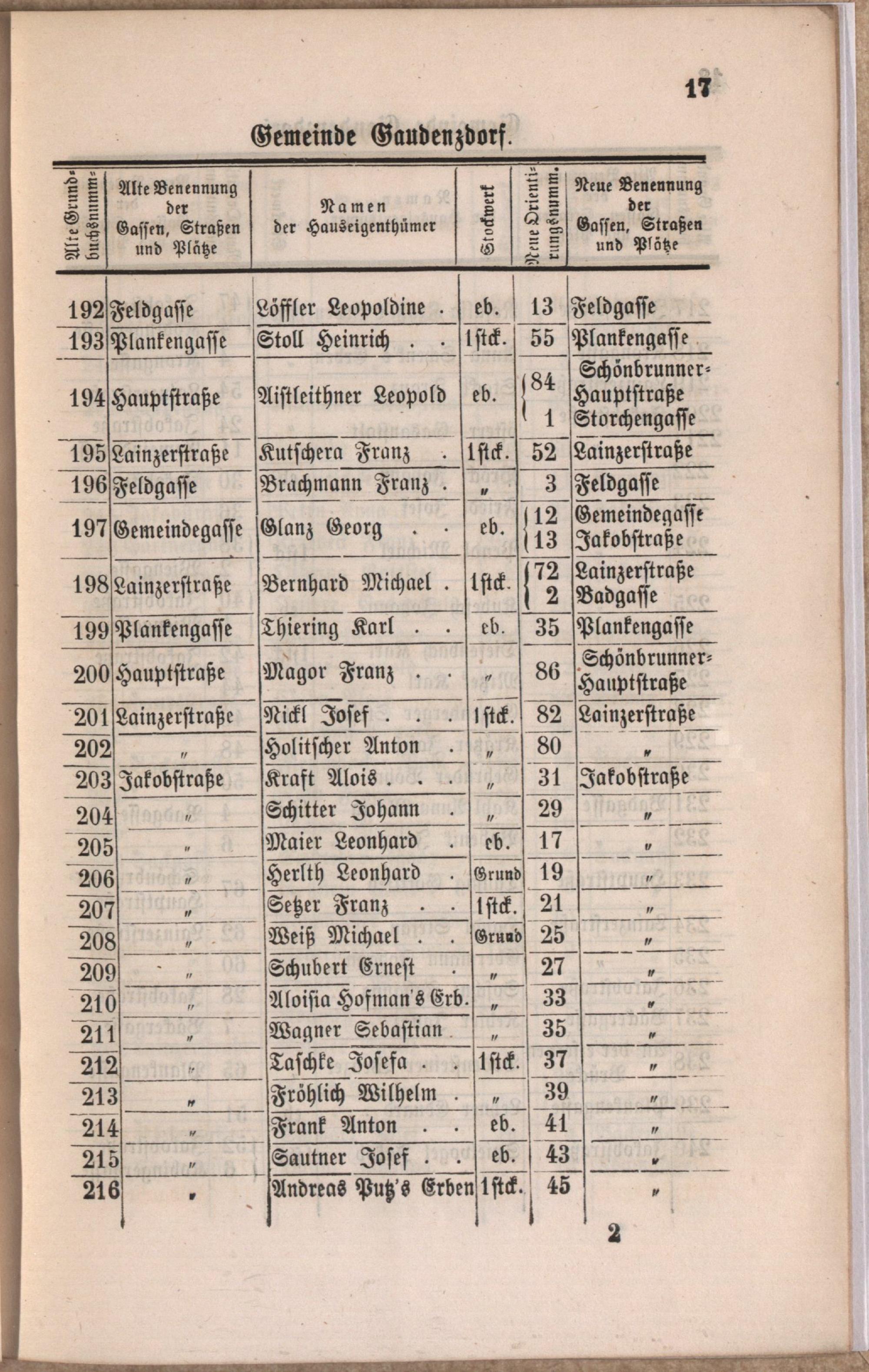 Orientirungs-Schema von Gaudenzdorf mit der neuen gassenweisen Nummerirung und einem Orientirungs-Plane : enthaltend die 301 alten Grundbuchsnummern, die neuen Orientirungsnummern und die neuen Gassenbenennungen