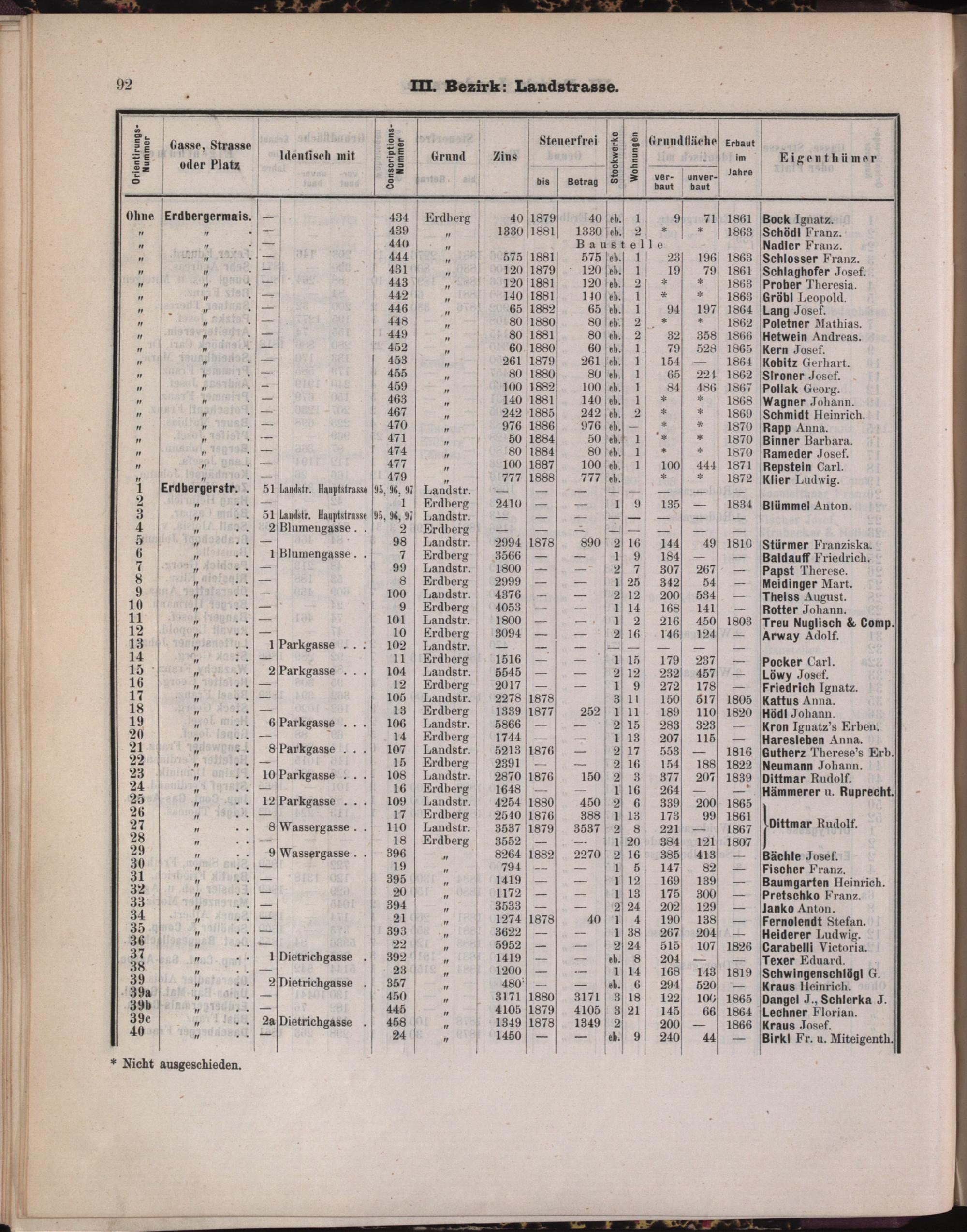 Der Cataster : Handbuch für Ämter, Architekten, Baumeister, Capitalisten, Hausbesitzer etc., etc. über sämmtliche Häuser der K.K. Reichshaupt- und Residenzstadt Wien / Hrsg. und Verl. Joseph Schlessinger