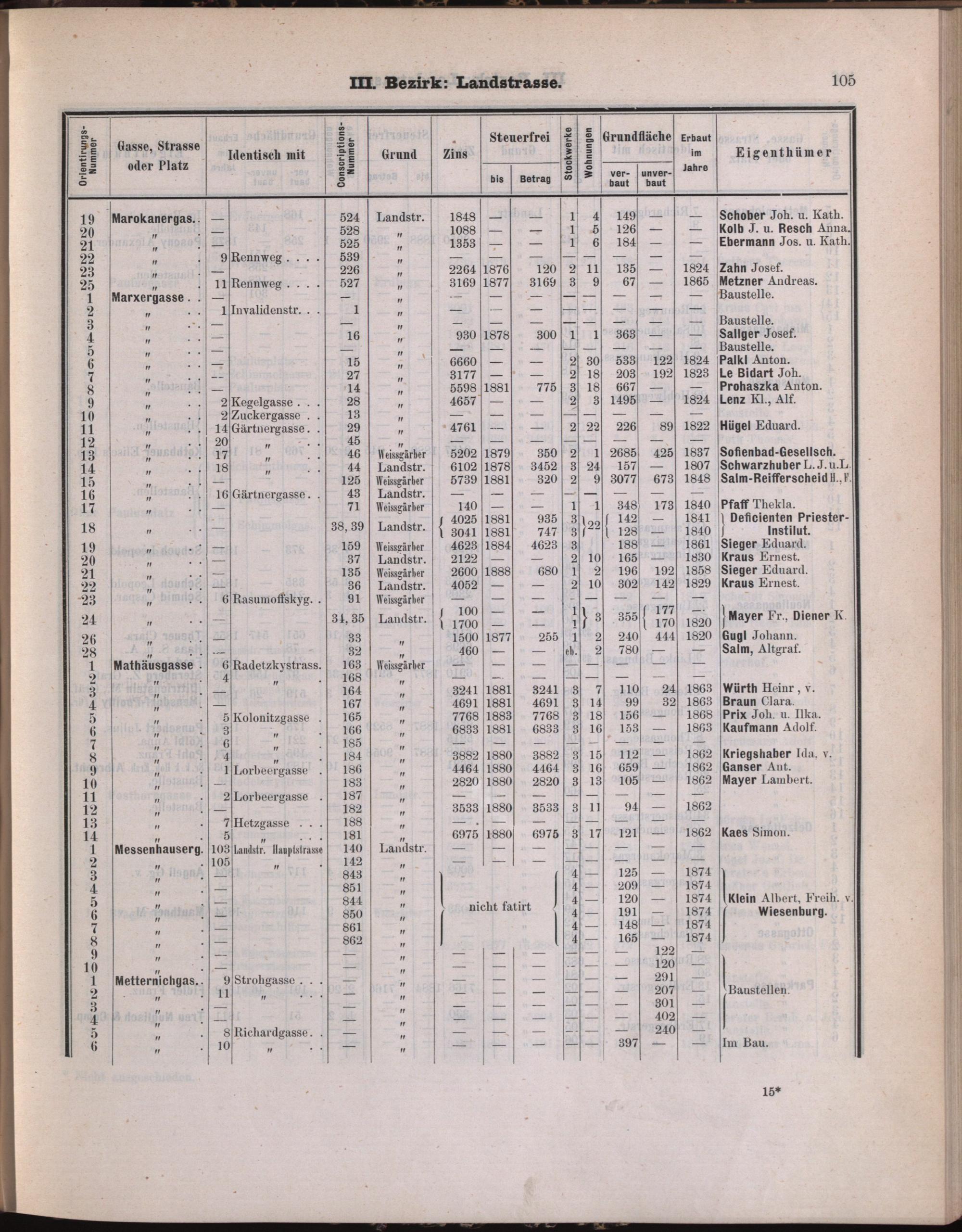 Der Cataster : Handbuch für Ämter, Architekten, Baumeister, Capitalisten, Hausbesitzer etc., etc. über sämmtliche Häuser der K.K. Reichshaupt- und Residenzstadt Wien / Hrsg. und Verl. Joseph Schlessinger