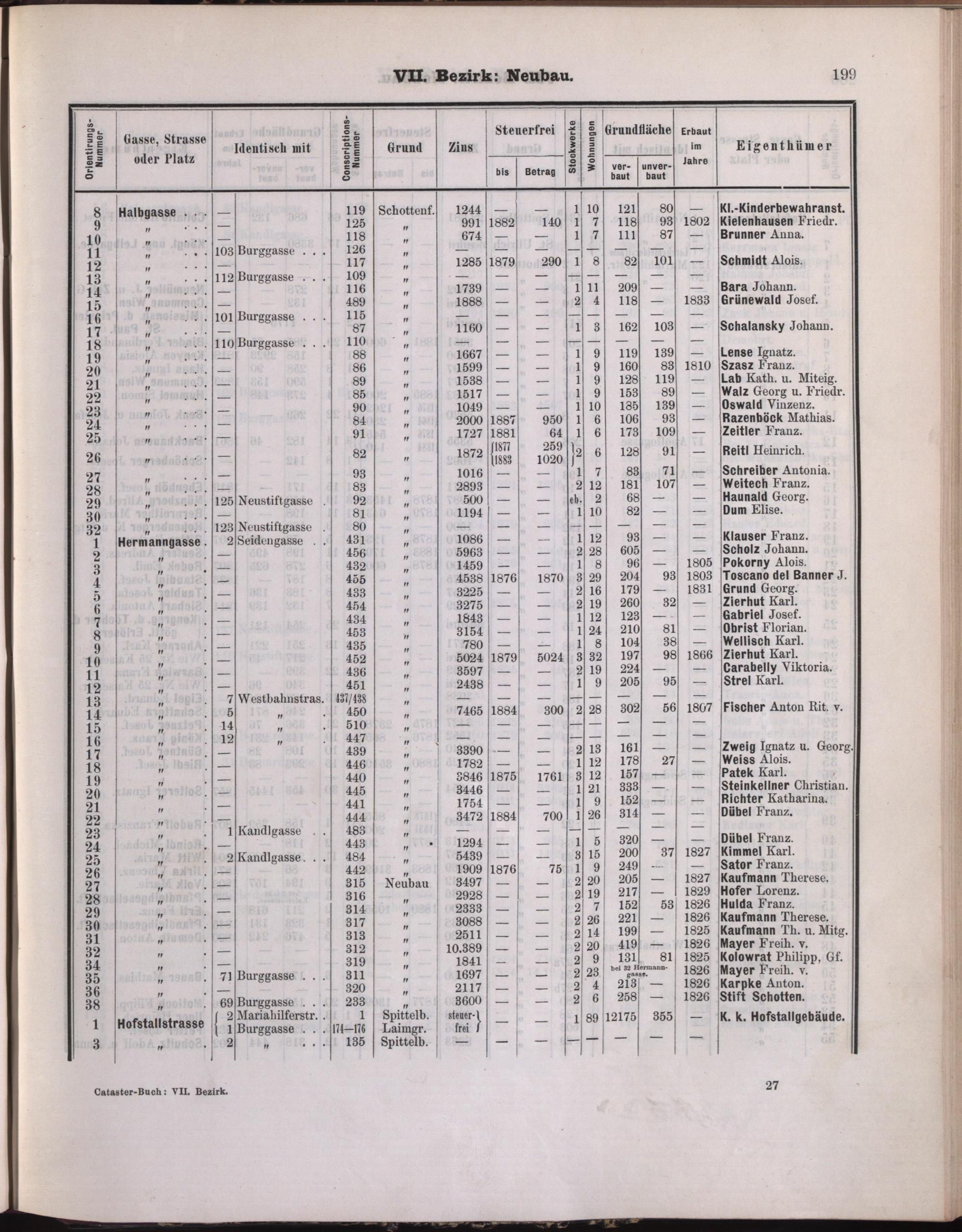 Der Cataster : Handbuch für Ämter, Architekten, Baumeister, Capitalisten, Hausbesitzer etc., etc. über sämmtliche Häuser der K.K. Reichshaupt- und Residenzstadt Wien / Hrsg. und Verl. Joseph Schlessinger