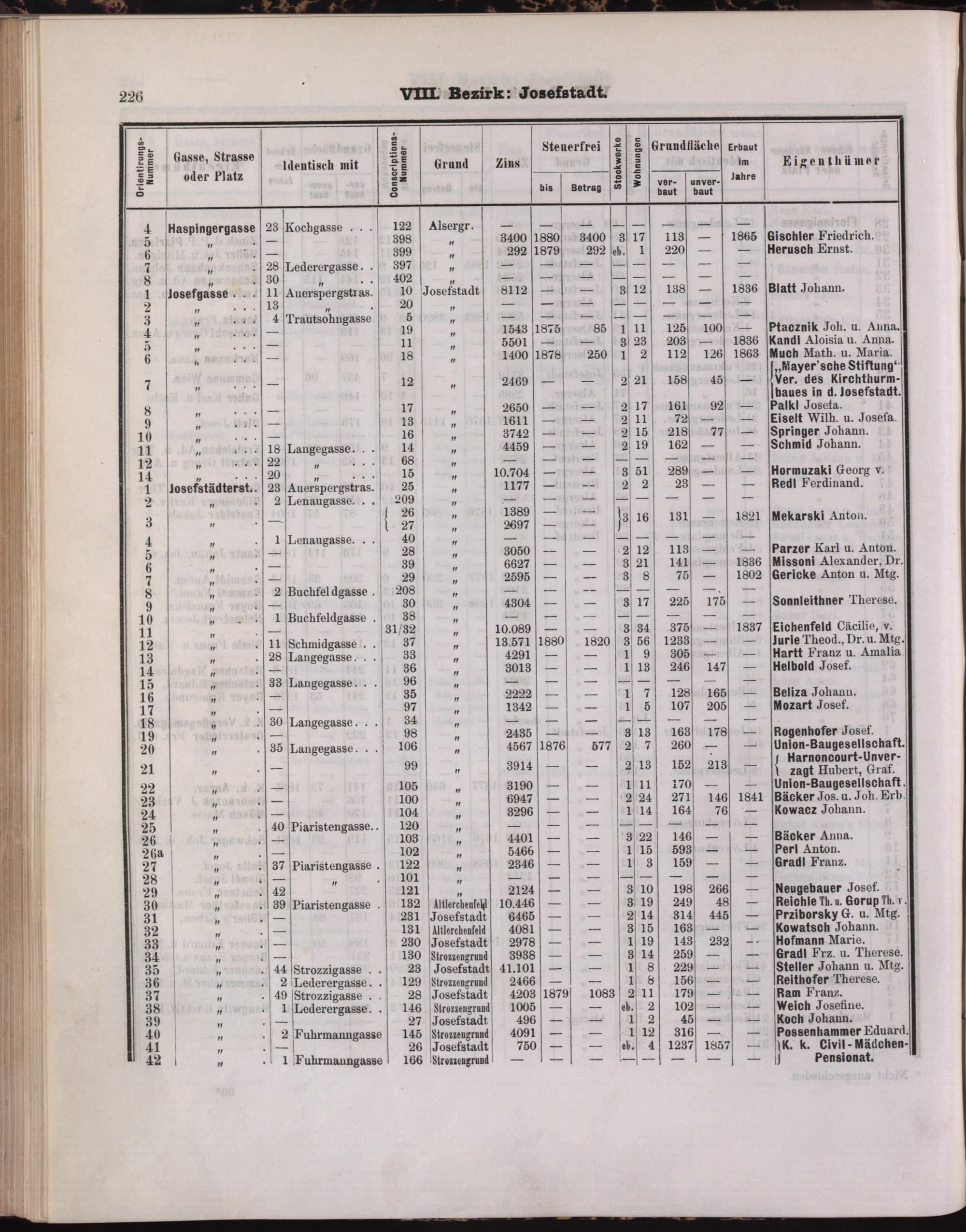 Der Cataster : Handbuch für Ämter, Architekten, Baumeister, Capitalisten, Hausbesitzer etc., etc. über sämmtliche Häuser der K.K. Reichshaupt- und Residenzstadt Wien / Hrsg. und Verl. Joseph Schlessinger