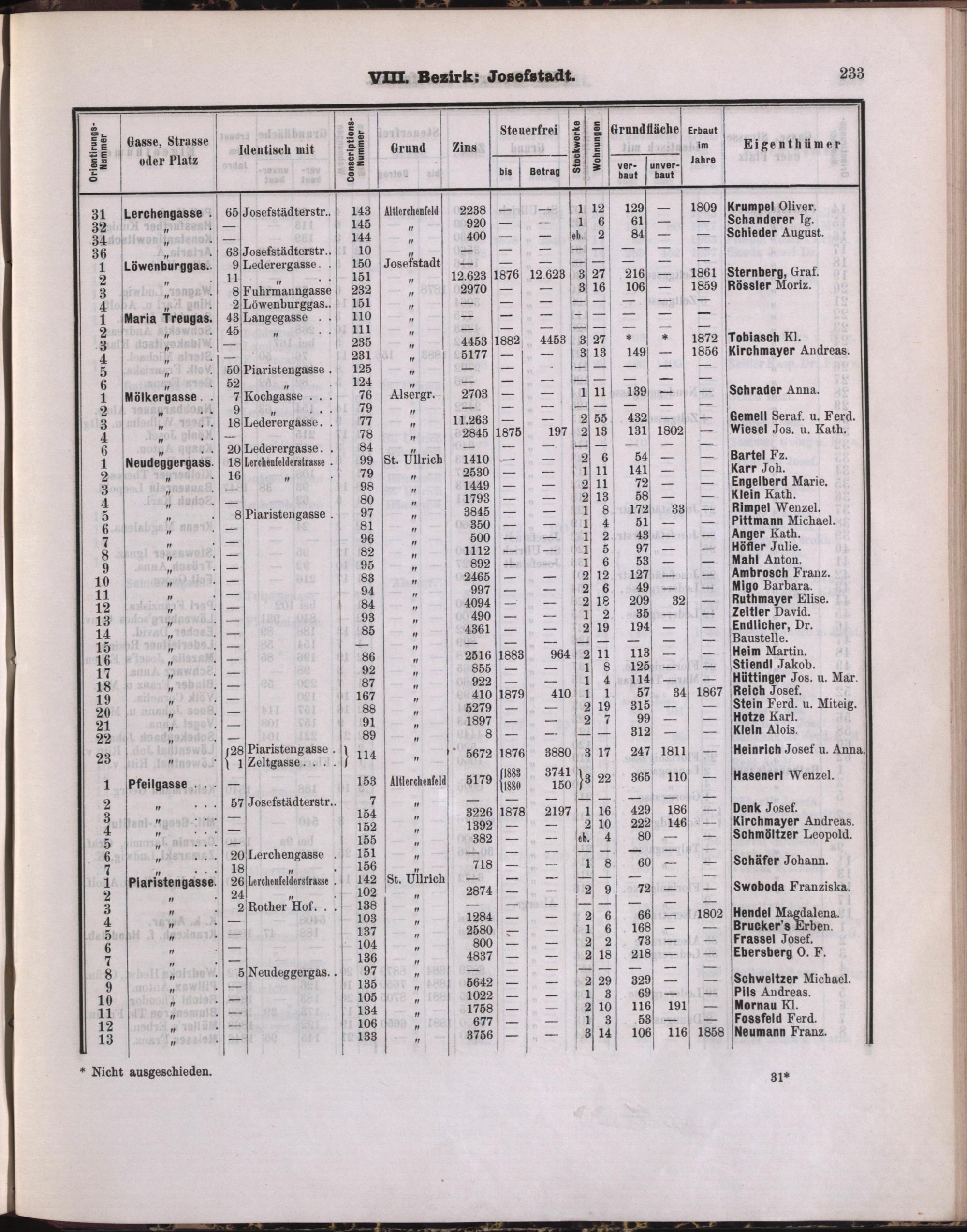 Der Cataster : Handbuch für Ämter, Architekten, Baumeister, Capitalisten, Hausbesitzer etc., etc. über sämmtliche Häuser der K.K. Reichshaupt- und Residenzstadt Wien / Hrsg. und Verl. Joseph Schlessinger