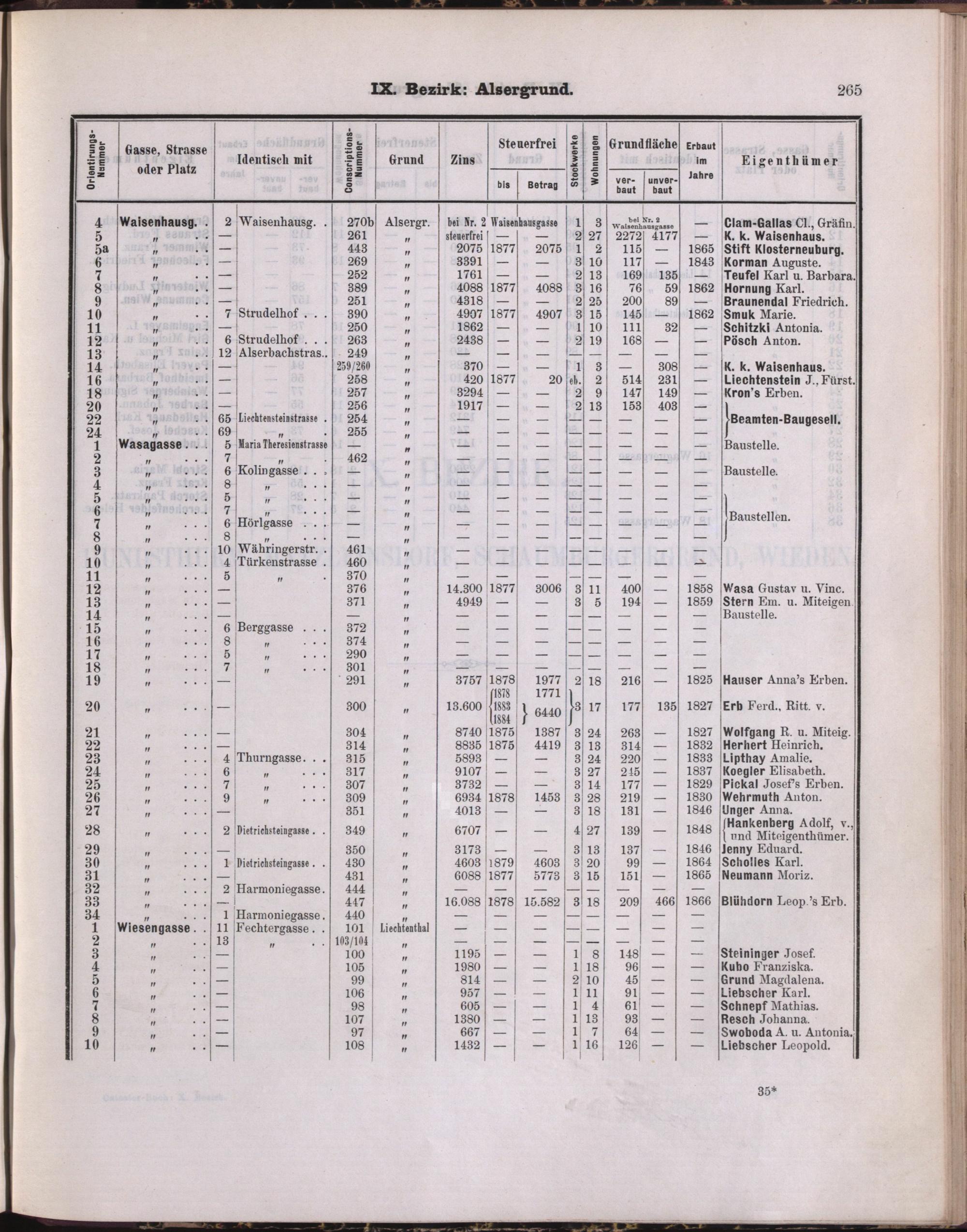 Der Cataster : Handbuch für Ämter, Architekten, Baumeister, Capitalisten, Hausbesitzer etc., etc. über sämmtliche Häuser der K.K. Reichshaupt- und Residenzstadt Wien / Hrsg. und Verl. Joseph Schlessinger