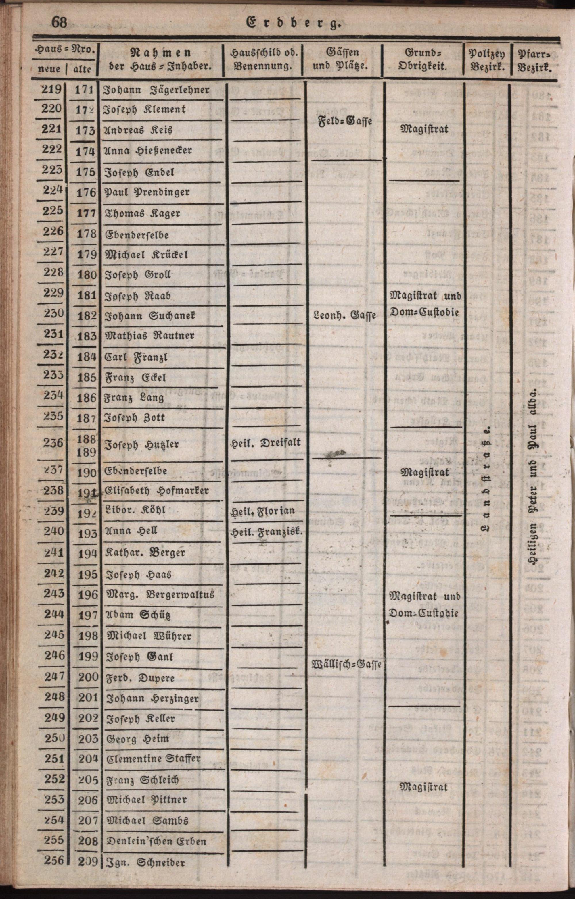 Neuester verbesserter Schema aller in der k.k. Haupt- und Residenzstadt Wien und in ihren Vorstädten befindlichen Häusern : ein nothwendiges Handbuch für Jedermann als richtiger Wegweiser durch die Stadt und sämmtlicher 34 Vorstädte ; mit genauer Angabe sämmtlicher Haus-Nummern, aller dermaligen Haus-Eigenthümer und Haus-Schilder, Straßen, Plätze, Grundobrigkeiten, dann Polizey- und Pfarr-Bezirke