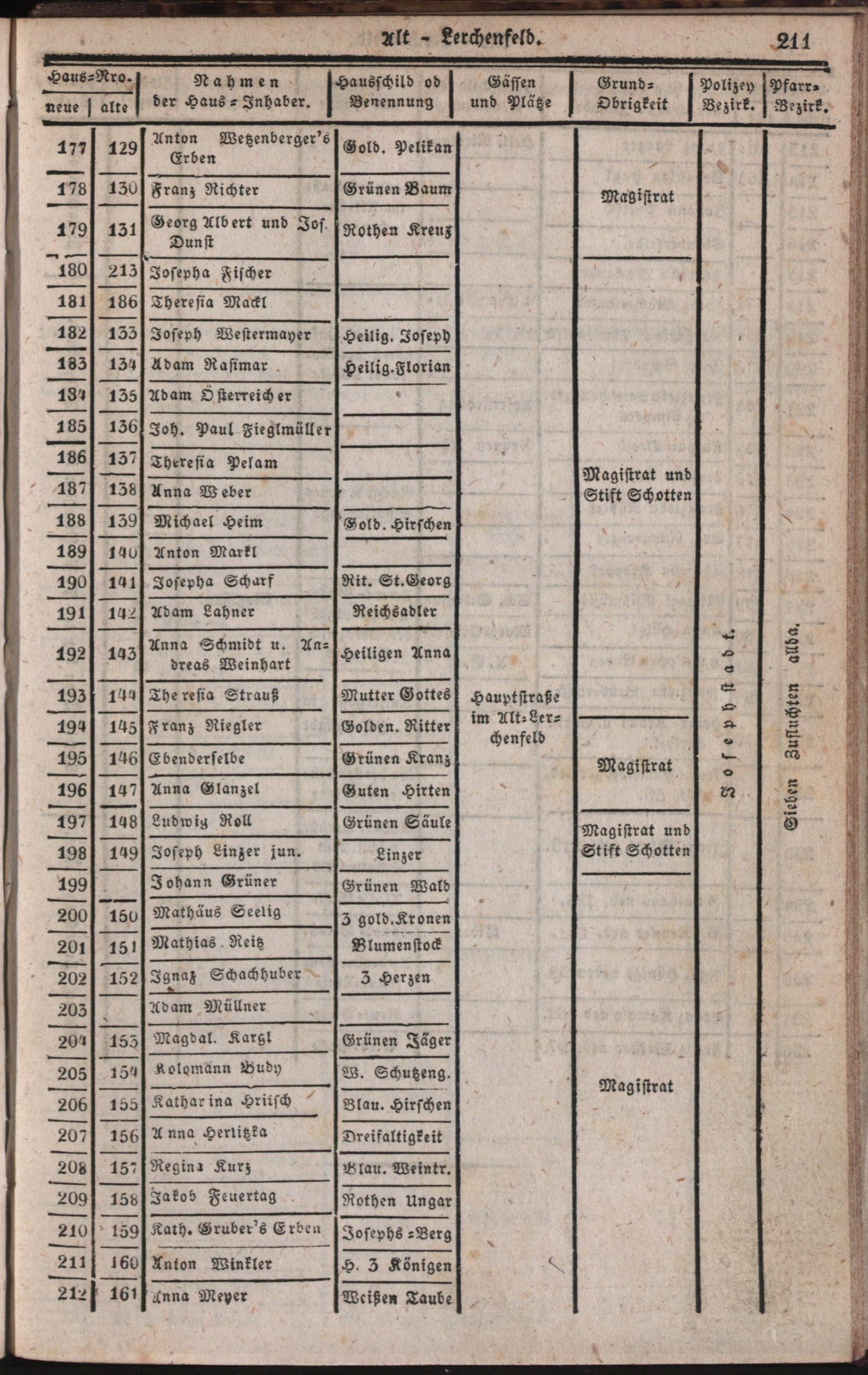 Neuester verbesserter Schema aller in der k.k. Haupt- und Residenzstadt Wien und in ihren Vorstädten befindlichen Häusern : ein nothwendiges Handbuch für Jedermann als richtiger Wegweiser durch die Stadt und sämmtlicher 34 Vorstädte ; mit genauer Angabe sämmtlicher Haus-Nummern, aller dermaligen Haus-Eigenthümer und Haus-Schilder, Straßen, Plätze, Grundobrigkeiten, dann Polizey- und Pfarr-Bezirke