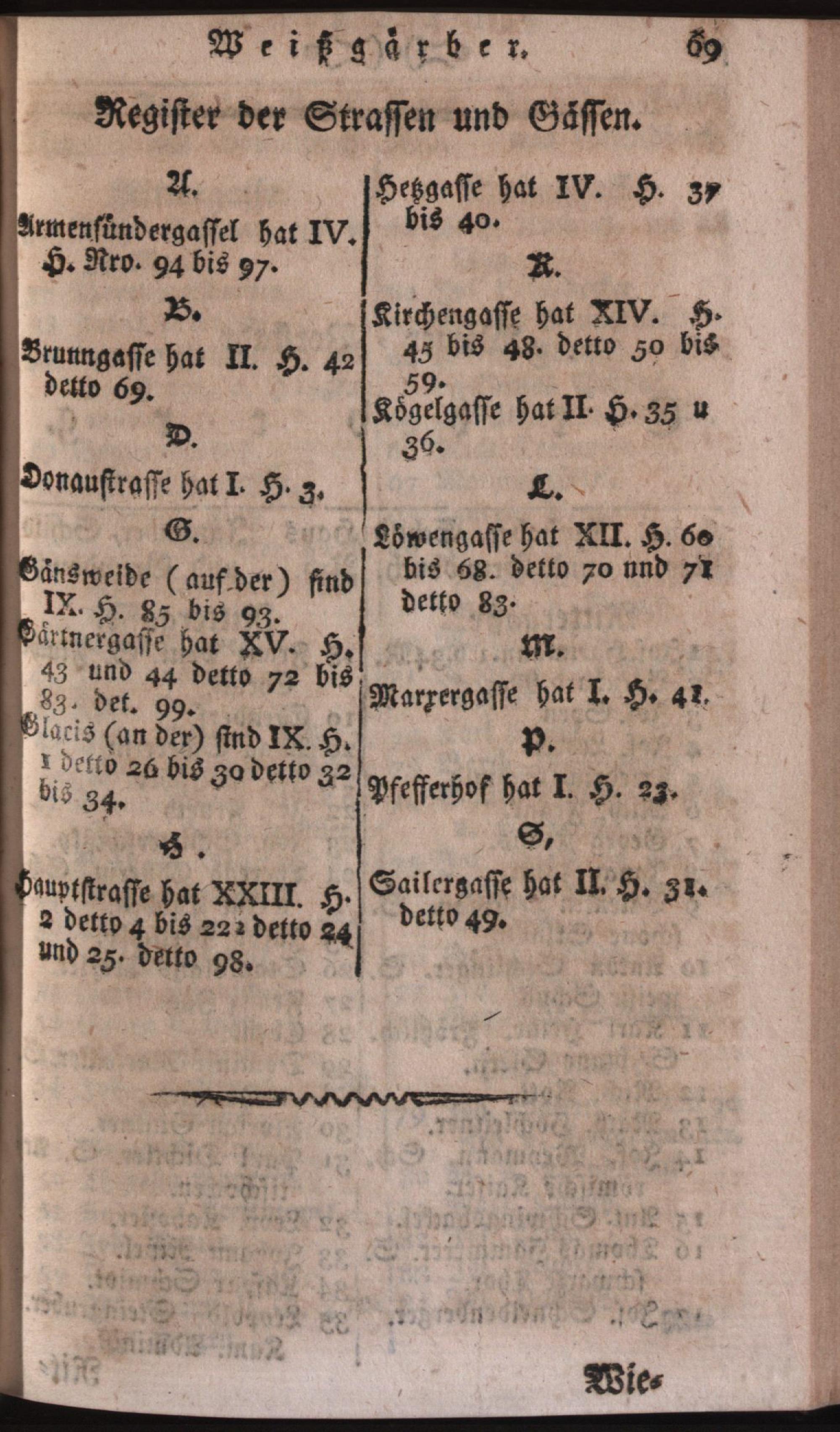 Vollständiges Verzeichniß aller in der kaiserlichen auch k. k. Haupt- und Residenz-Stadt Wien inner denen Linien befindlichen numerirten Häuser deren Eigenthümer, Strassen, Gässen, Plätze und Schilder : nebst genauer Anzeige der Grundbücher und Pfarren zu denen jedes Haus gehört, und einem sehr wichtigen Anhange / verf. von Joseph Johann Grosbauer