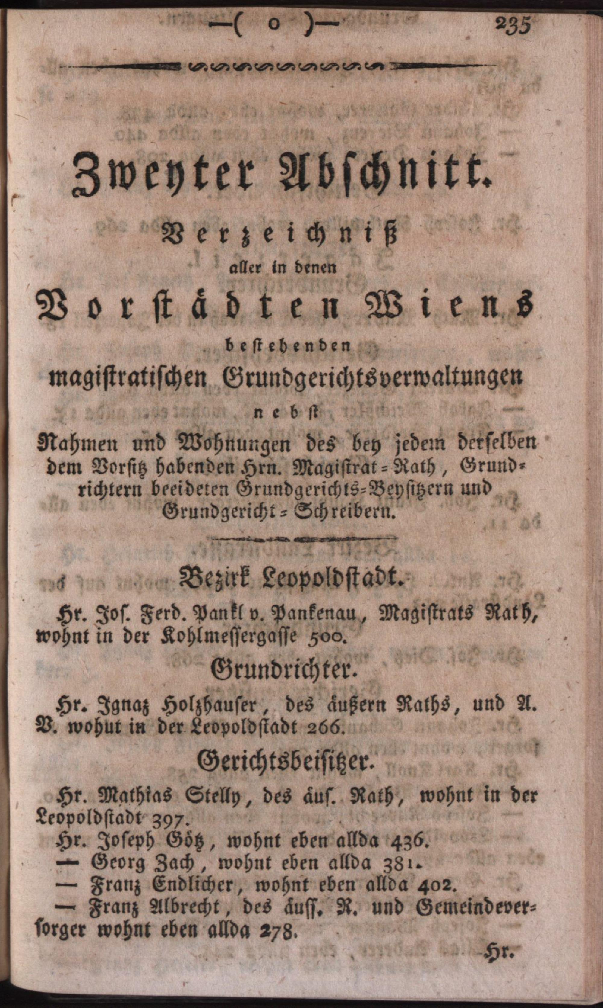 Vollständiges Verzeichniß aller in der kaiserlichen auch k. k. Haupt- und Residenz-Stadt Wien inner denen Linien befindlichen numerirten Häuser deren Eigenthümer, Strassen, Gässen, Plätze und Schilder : nebst genauer Anzeige der Grundbücher und Pfarren zu denen jedes Haus gehört, und einem sehr wichtigen Anhange / verf. von Joseph Johann Grosbauer