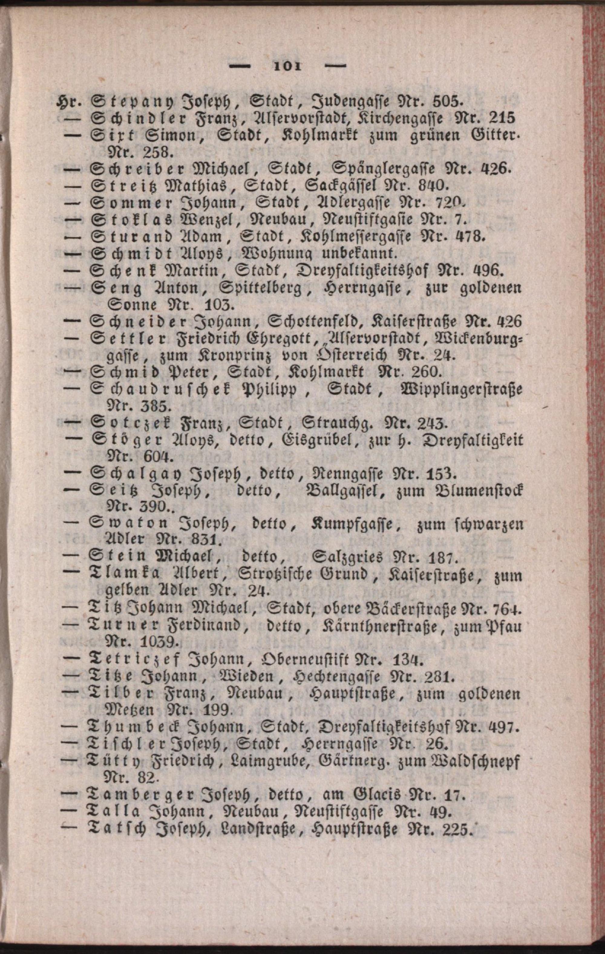 Adreß-Buch der ehrsamen Handwerks-Innungen in der k.k. Haupt- und Residenzstadt Wien, für das Jahr 1827 : enthaltend ein genaues Nahmens-Verzeichnis aller dermahligen Herrn Vorsteher und bürgerlichen Meister, sodann der Befugten jeder Innung, nebst Angabe der Wohnungen und Verkaufsgewölbe (Stadt, Vorstadt, Polizey-Bezirk, Haus Nr.) der zurückzulegenden Lehrjahre und der Herbergsorte ; zum leichteren Aufsuchen für Einheimische und Fremde / hrsg. von Franz Rittler
