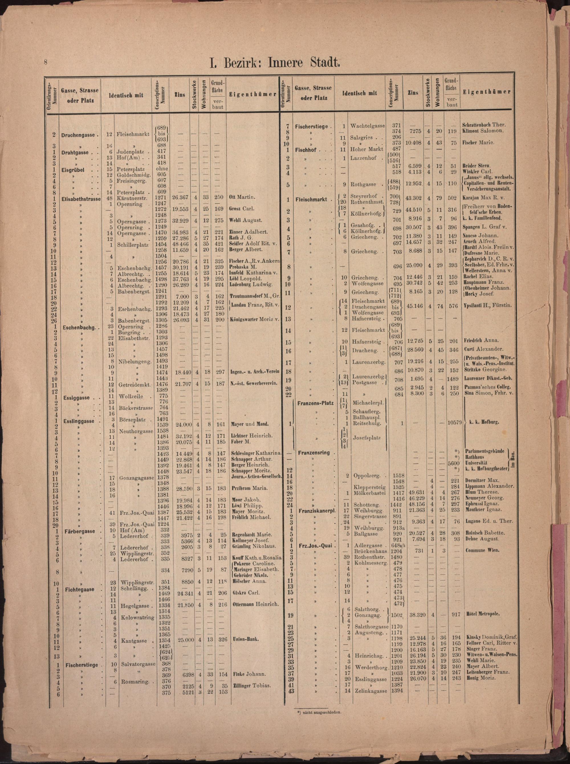 Häuser-Schema der K. K. Reichs-Haupt- und Residenzstadt Wien : mit deren zehn Bezirken und den Vororten Ober- und Untermeidling, Gaudenzdorf, Sechshaus, Rudolfsheim, Fünfhaus, Neulerchenfeld, Ottakring, Hernals, Währing, Weinhaus, Gersthof, Ober- und Unterdöbling, Heiligenstadt, Grinzing, Nussdorf, Brigittenau, Floridsdorf, Simmering und die neuporjectirte Donaustadt in 15 Plänen / hrsg. von Peter Smöch