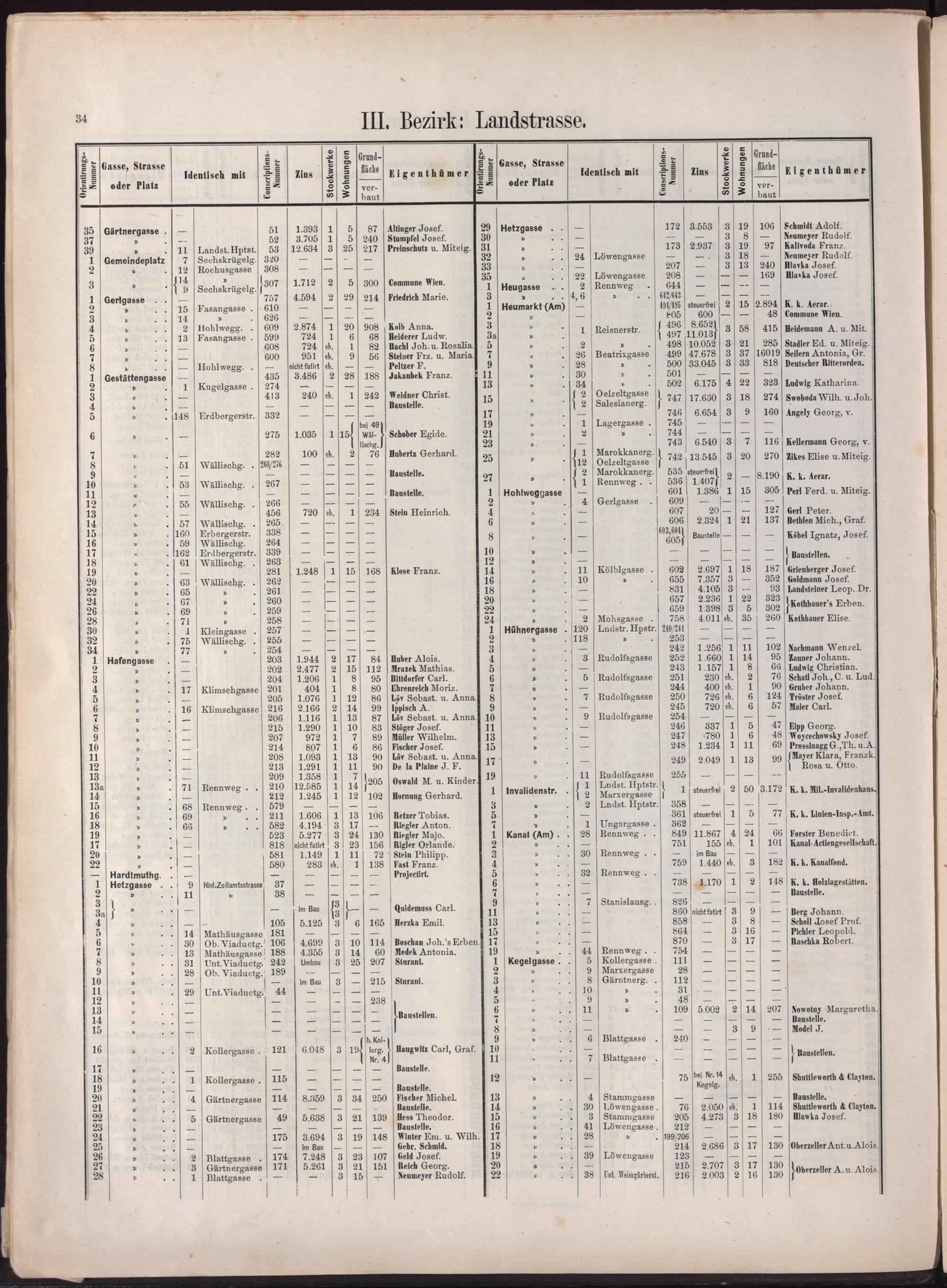 Häuser-Schema der K. K. Reichs-Haupt- und Residenzstadt Wien : mit deren zehn Bezirken und den Vororten Ober- und Untermeidling, Gaudenzdorf, Sechshaus, Rudolfsheim, Fünfhaus, Neulerchenfeld, Ottakring, Hernals, Währing, Weinhaus, Gersthof, Ober- und Unterdöbling, Heiligenstadt, Grinzing, Nussdorf, Brigittenau, Floridsdorf, Simmering und die neuporjectirte Donaustadt in 15 Plänen / hrsg. von Peter Smöch