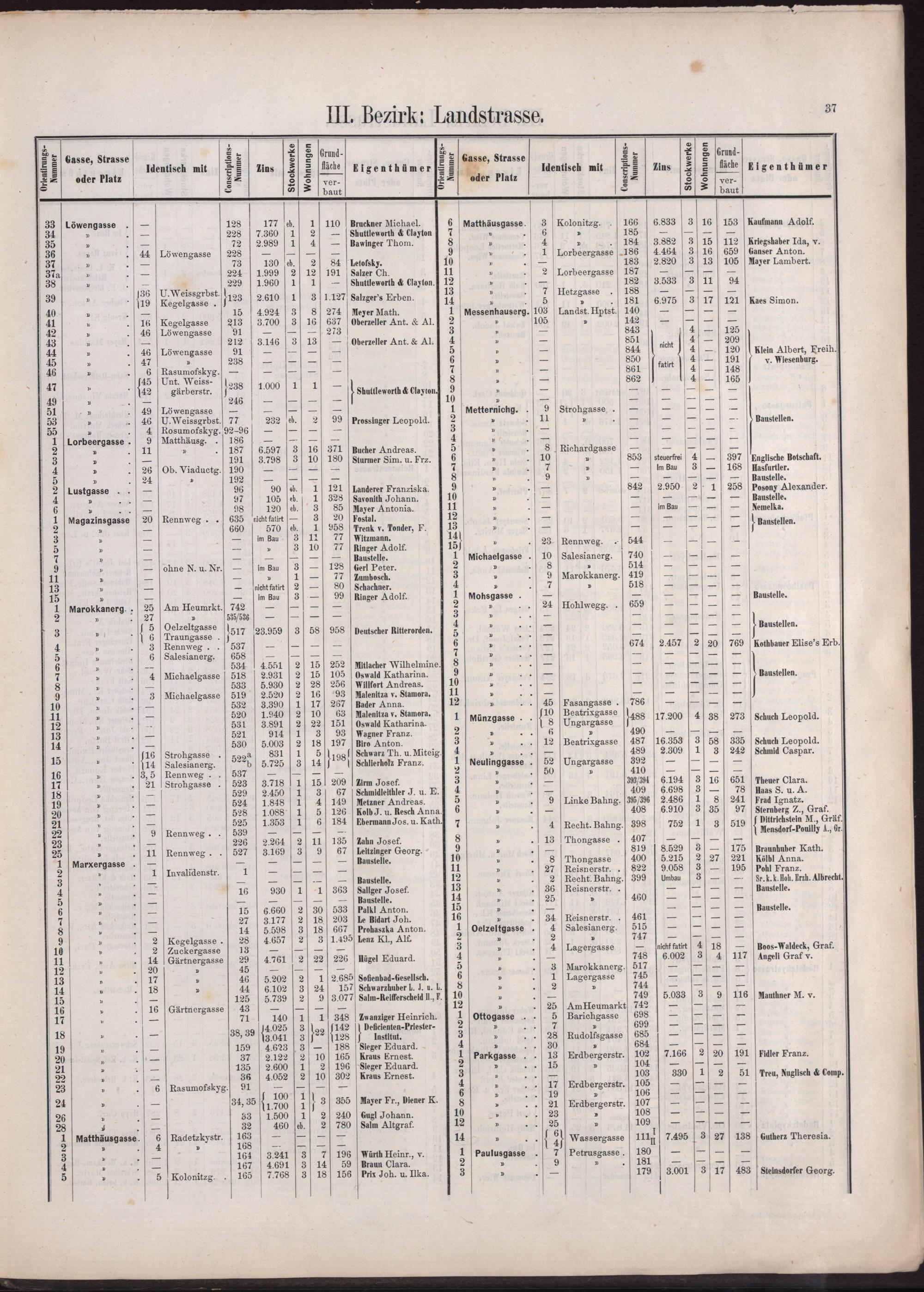 Häuser-Schema der K. K. Reichs-Haupt- und Residenzstadt Wien : mit deren zehn Bezirken und den Vororten Ober- und Untermeidling, Gaudenzdorf, Sechshaus, Rudolfsheim, Fünfhaus, Neulerchenfeld, Ottakring, Hernals, Währing, Weinhaus, Gersthof, Ober- und Unterdöbling, Heiligenstadt, Grinzing, Nussdorf, Brigittenau, Floridsdorf, Simmering und die neuporjectirte Donaustadt in 15 Plänen / hrsg. von Peter Smöch